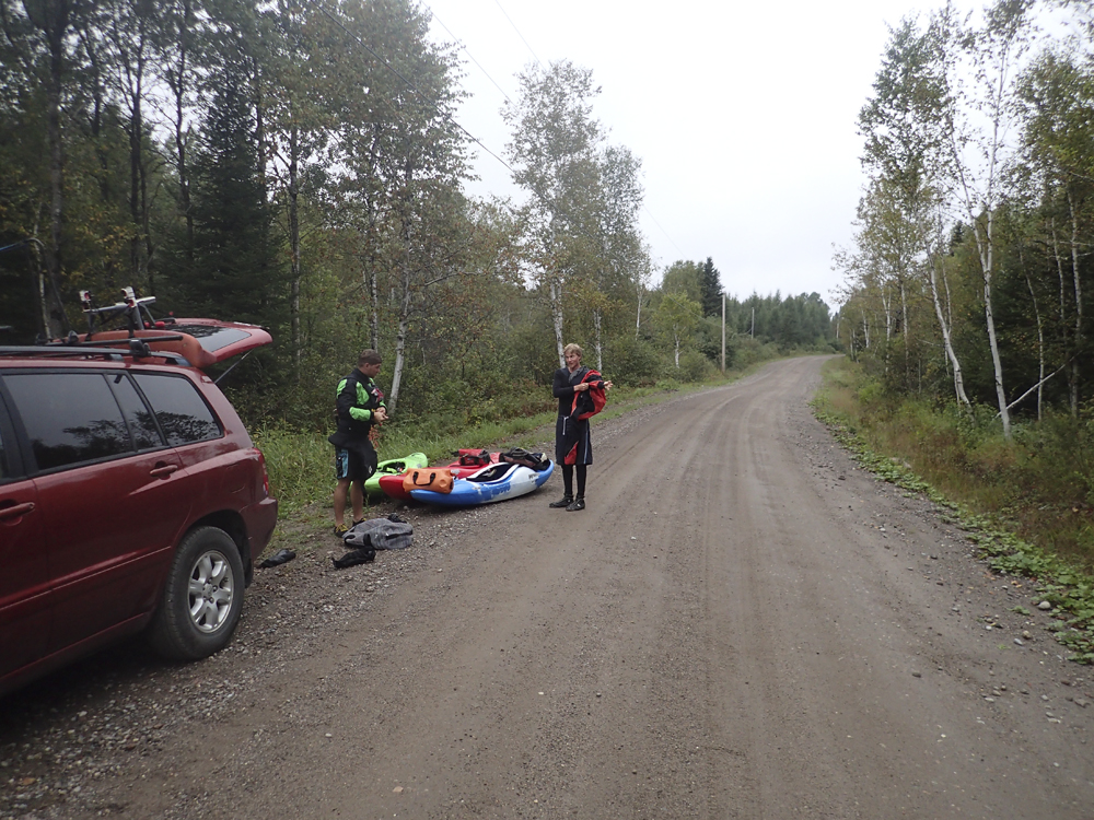 Put-in: Go back out to QC-172, turn right and cross the Valin. After just 1.3 km turn left onto Rang Saint Joseph. Follow this for 6.8 km, gaining basically ALL of the elevation in the first 1.5 km. At the T, turn left onto Rang Sainte Anne and follow for 3.4 km. If you get to the nice turn out you went a little too far. We went down an area that looked like it had once been a road, but was now waste high grass. There are houses going up all over here, so the access may be a bigger issue in the future.