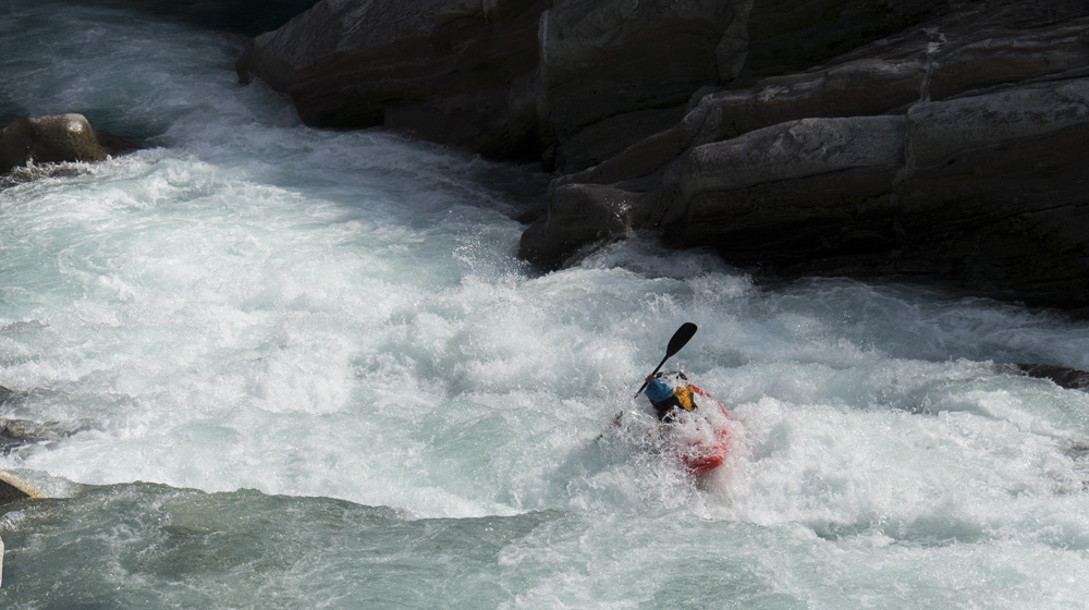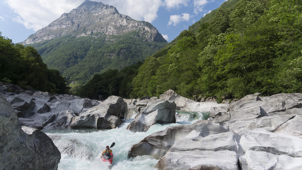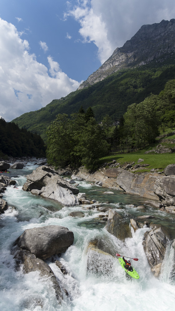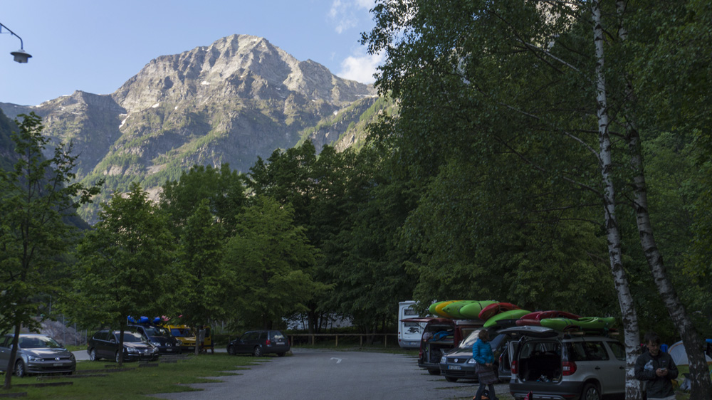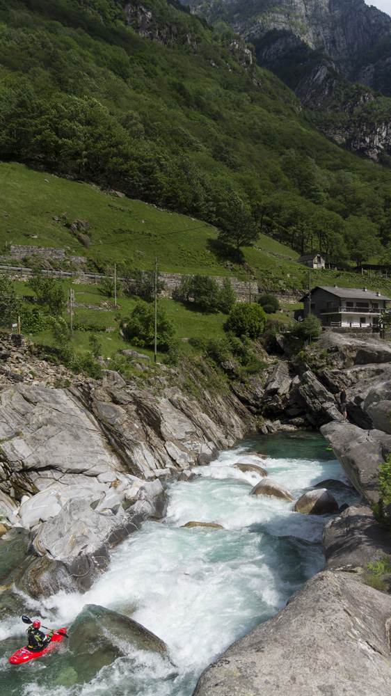 Put-in: As you drive up the valley, you will pass the town of Lavertezzo which is river side right in the meat of the lower section of the river. Continue just a short ways upstream to the large gravel parking lot. This is put-in. Head out the top of the parking area to run Lucifer's or find the trail just out the bottom of the lot to put in below the waterfall. Make sure you pay to park...