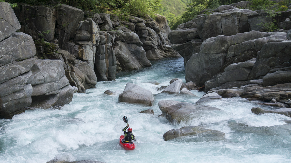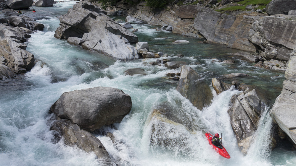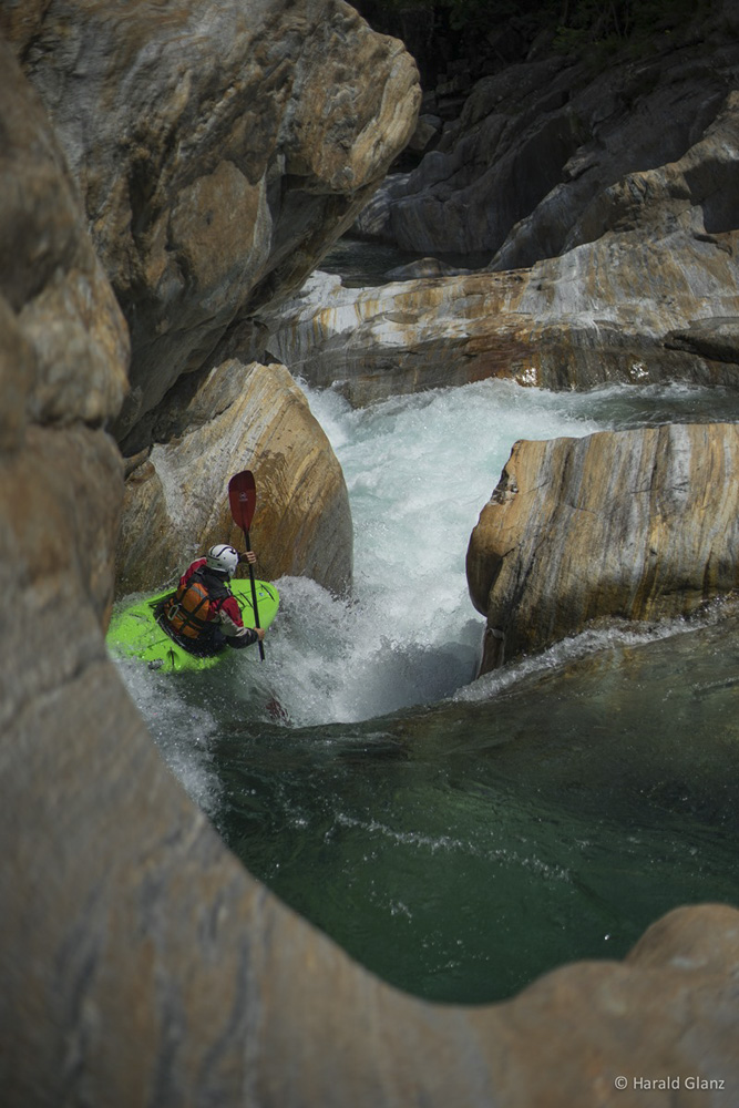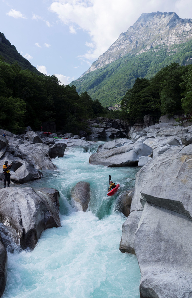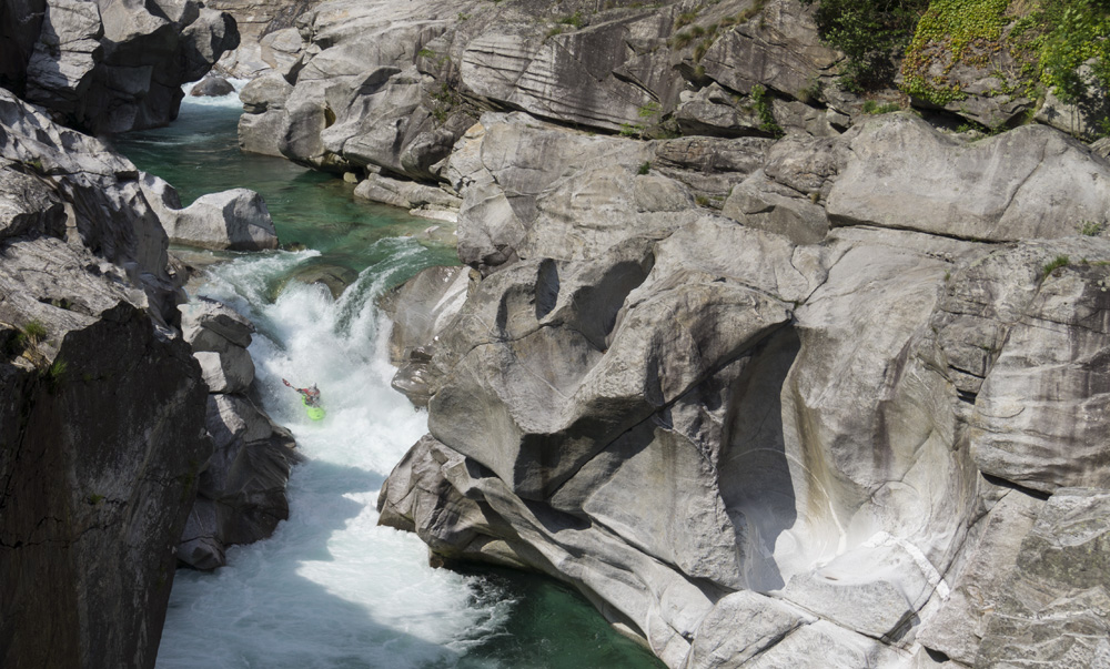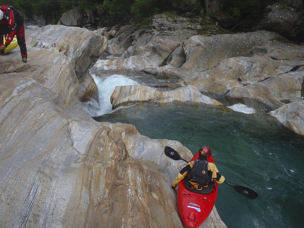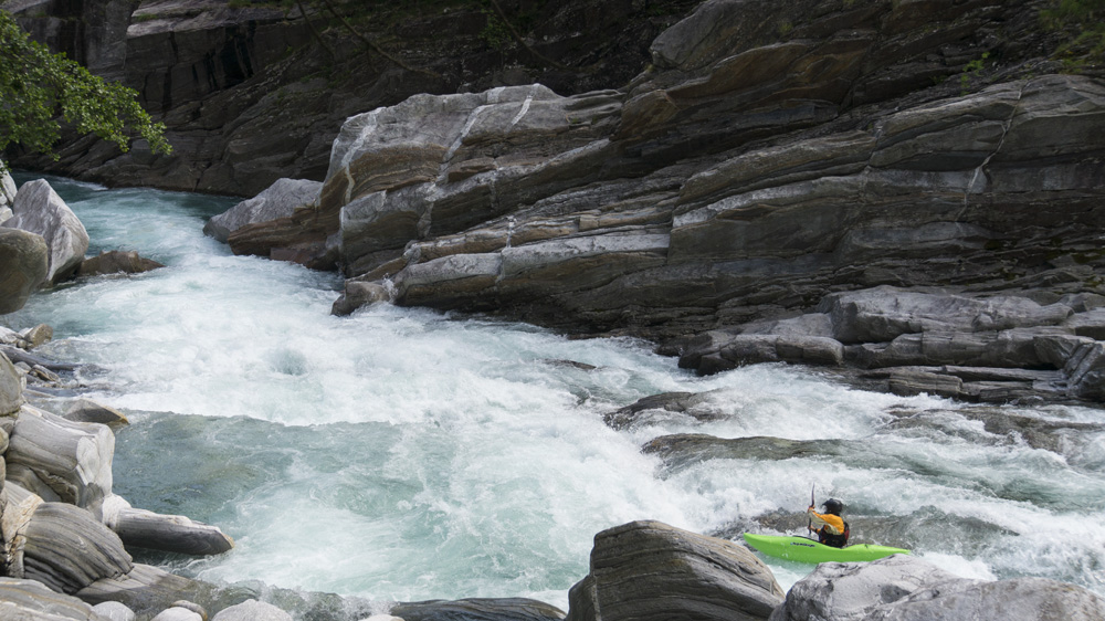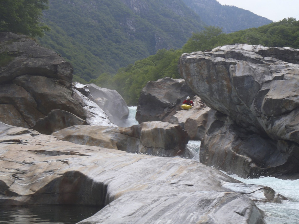 Some of the A-gamers will take a look at the waterfall at put in. this consequential falls gets run with regularity but walked far more often. If run, set safety on the caves. Below is the famous "Snail" rapid that has been seen in countless photos. Further downstream you get to a popular sun bathing spot where you run a 20 foot tall rapid with boofs and slides to negotiate. Further downstream as the river gets between a set of tight walls, some big boulder gardens appear before another quick potential portage. Downstream, more rapids await full of boofs, multi move boulder gardens, and slides to take you all the way to take-out. I literally cannot describe how nice this run is. Our first time down, with scouting and video it took over 4 hours. Each of the subsequent laps were under 25 minutes but left smiles on our faces for the remainder of the evening. If you are going to Italy or Switzerland... this one has to be on your list, it was one of the three rivers that inspired me to plan my whole trip in the first place, and man it did not disappoint.