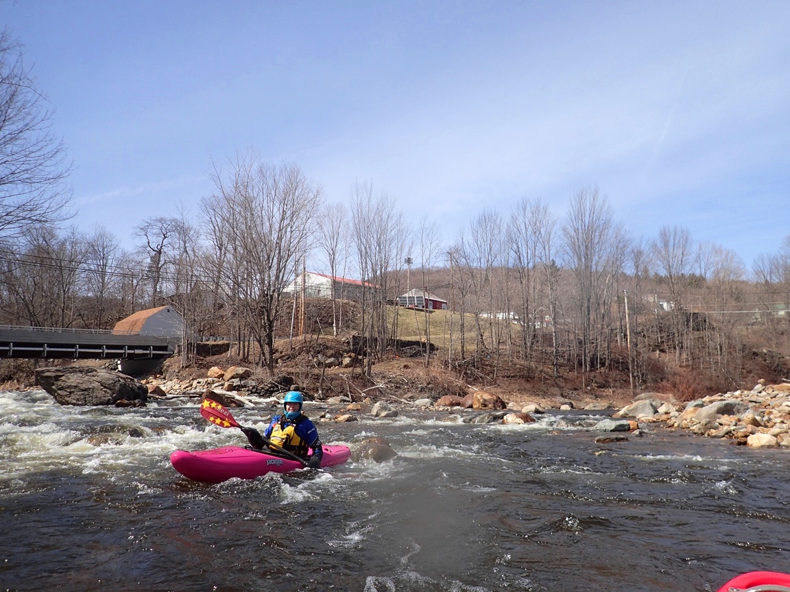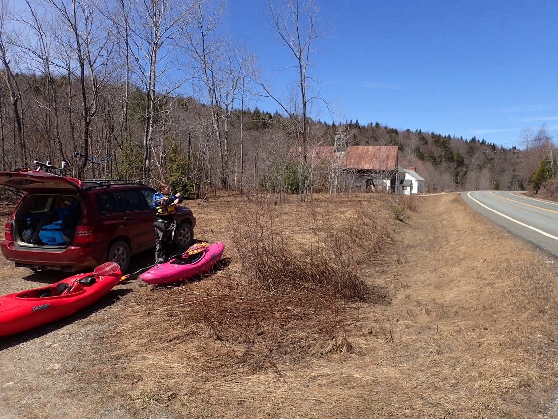 Put-in: Go back to VT-100 and turn left. Follow it for 2.8 miles to a a pull out just before a road between an old barn and a house. Park at the pull-out and walk down the road to the bridge to put-in. The walk is only 100 feet or so.
