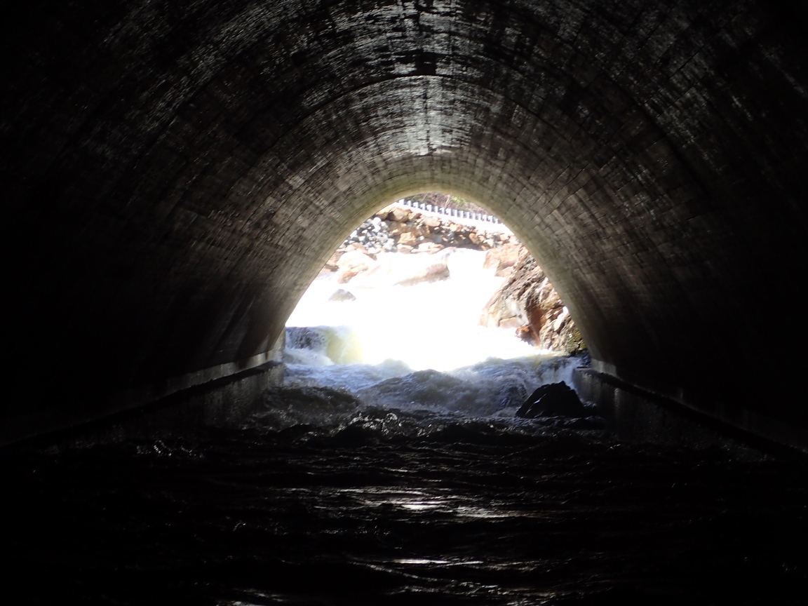 - Tunnel Falls (IV+). After a section of class II, the walls tighten and you get to Tunnel Falls. A 10-12 foot tall near vertical slide that ramps out into two holes. A straight forward rapid if you run right of center, but you definitely want to be in control as only a few small eddies are between you and Breather. We scouted from the road prior to putting on but we were also able to hop out on the left to video from the lip.