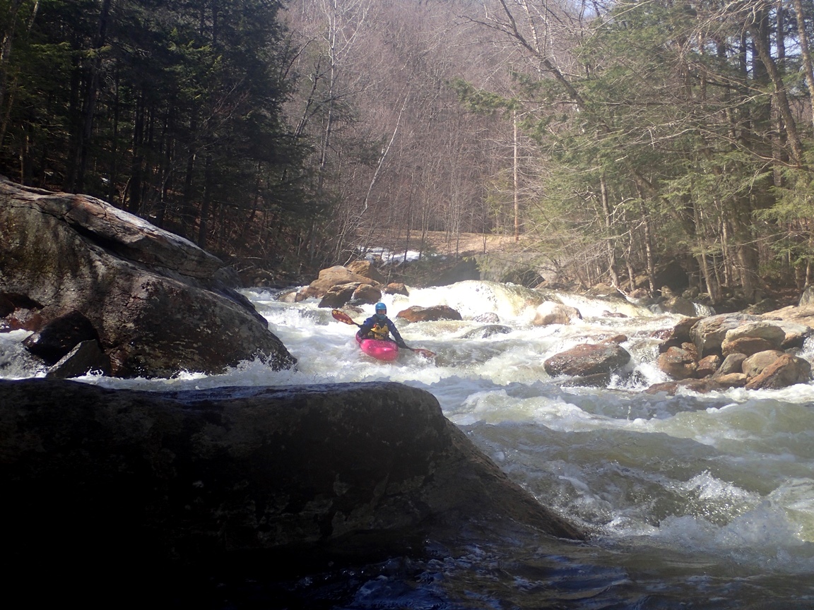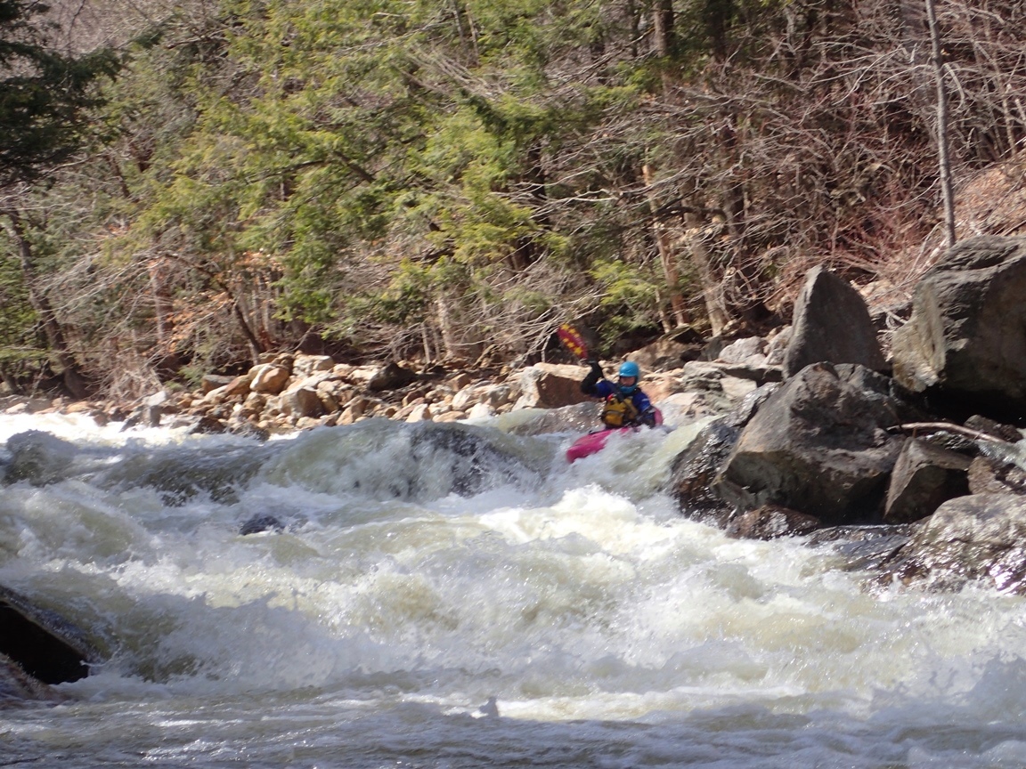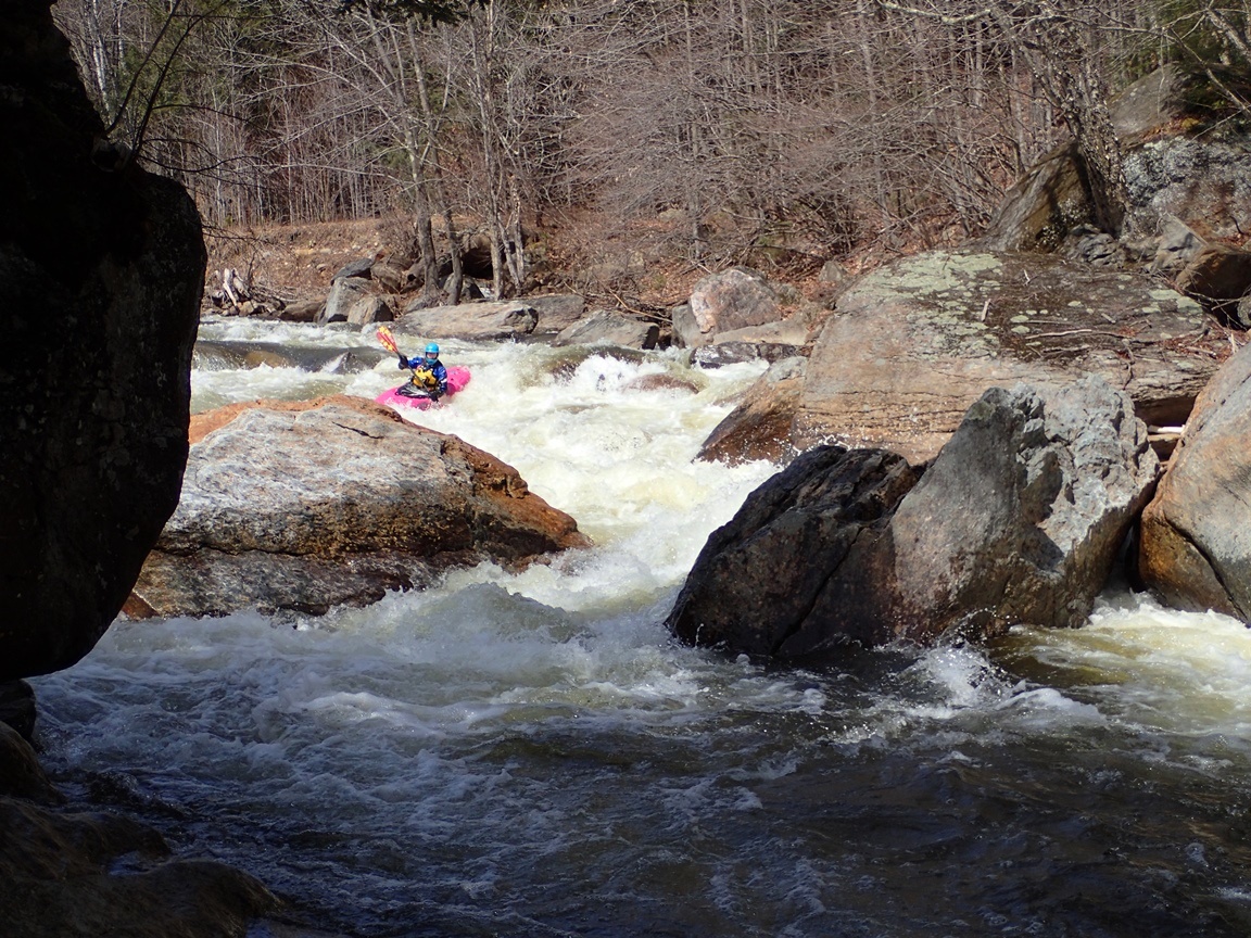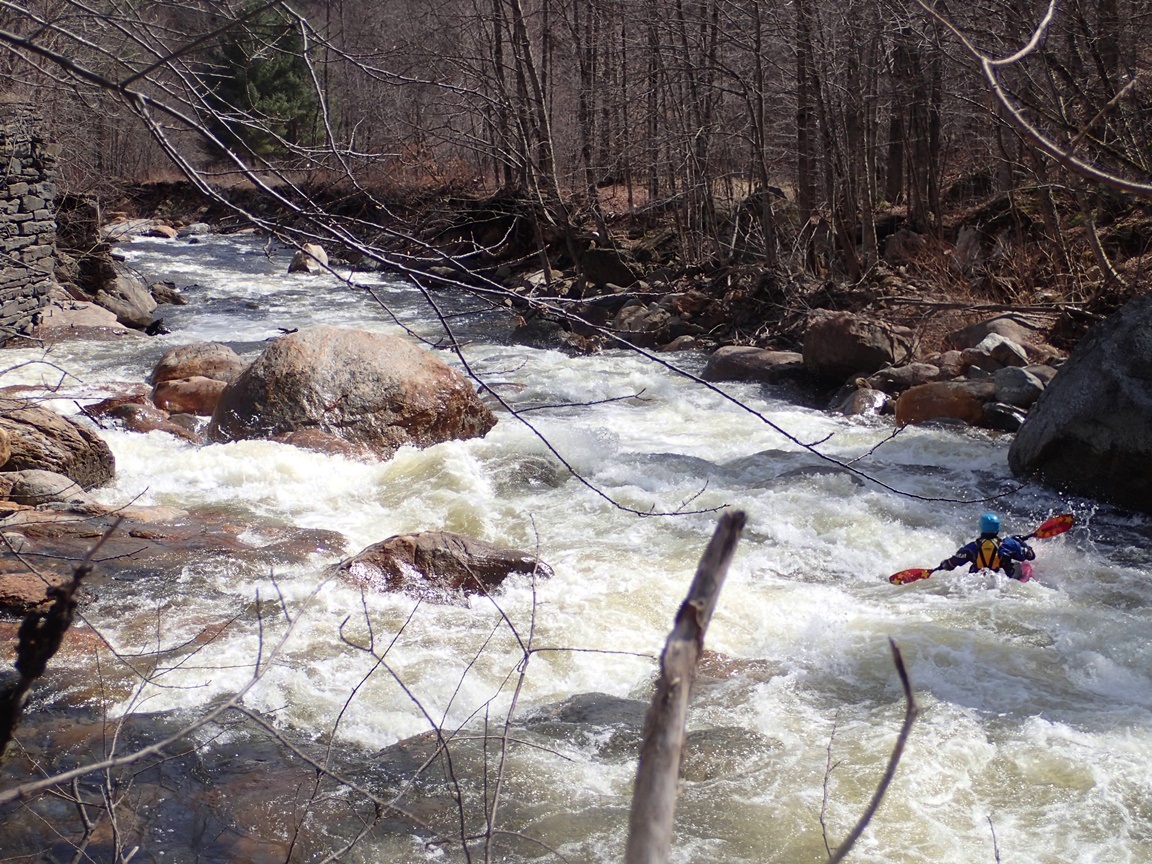The run starts off with a few fun warm-up rapids before mellowing out which quickly eats away the mileage to the first hard section, just below the first bridge. This section has a very large and in play sieve in the first rapid, followed by a great boof and a boulder garden before it lets back up again. More mellow takes you to Tunnel Falls which marks the crux section. Downstream at this flow, only a few small eddies allow you egress from the river to the safety of the road above before the river drops into Breather... which at this flow had no eddies to egress below before Tunnel Vision... a stout, steep, constricted and dangerous drop that is certainly runnable... but that we had no desire to prove. Downstream the river keeps going with boulder gardens that get less defined as you get closer into town. A few scouts will likely be warranted before reaching the confluence with the Deerfield where the river has one class III waiting below before a quick paddle out.