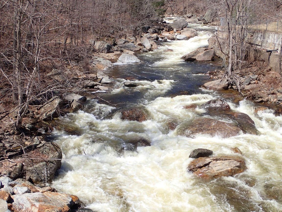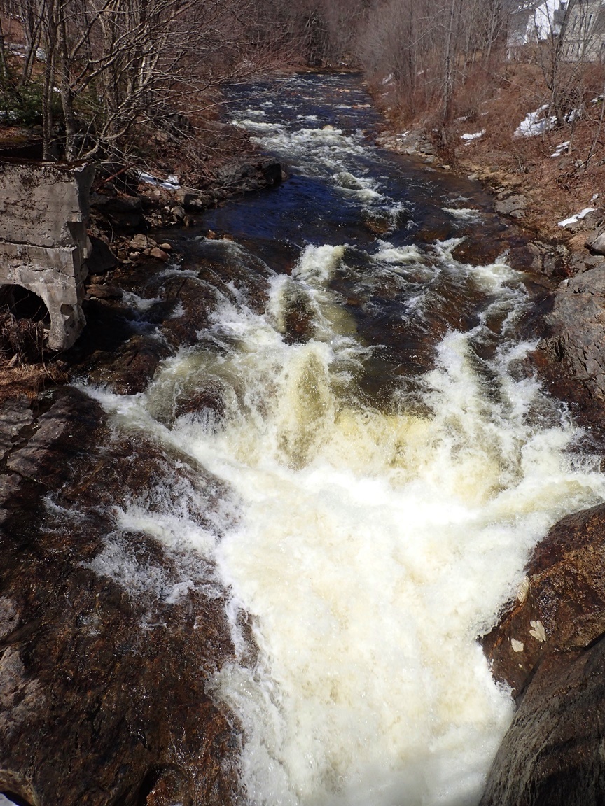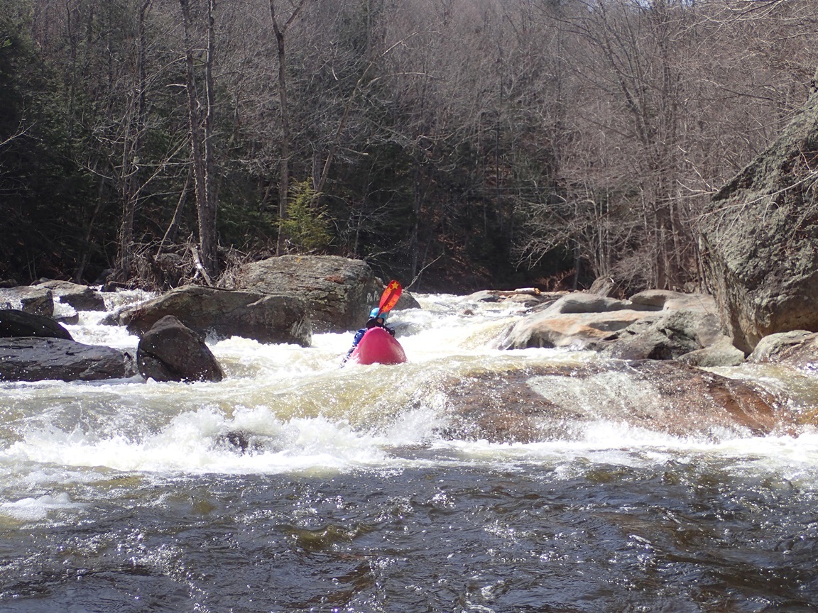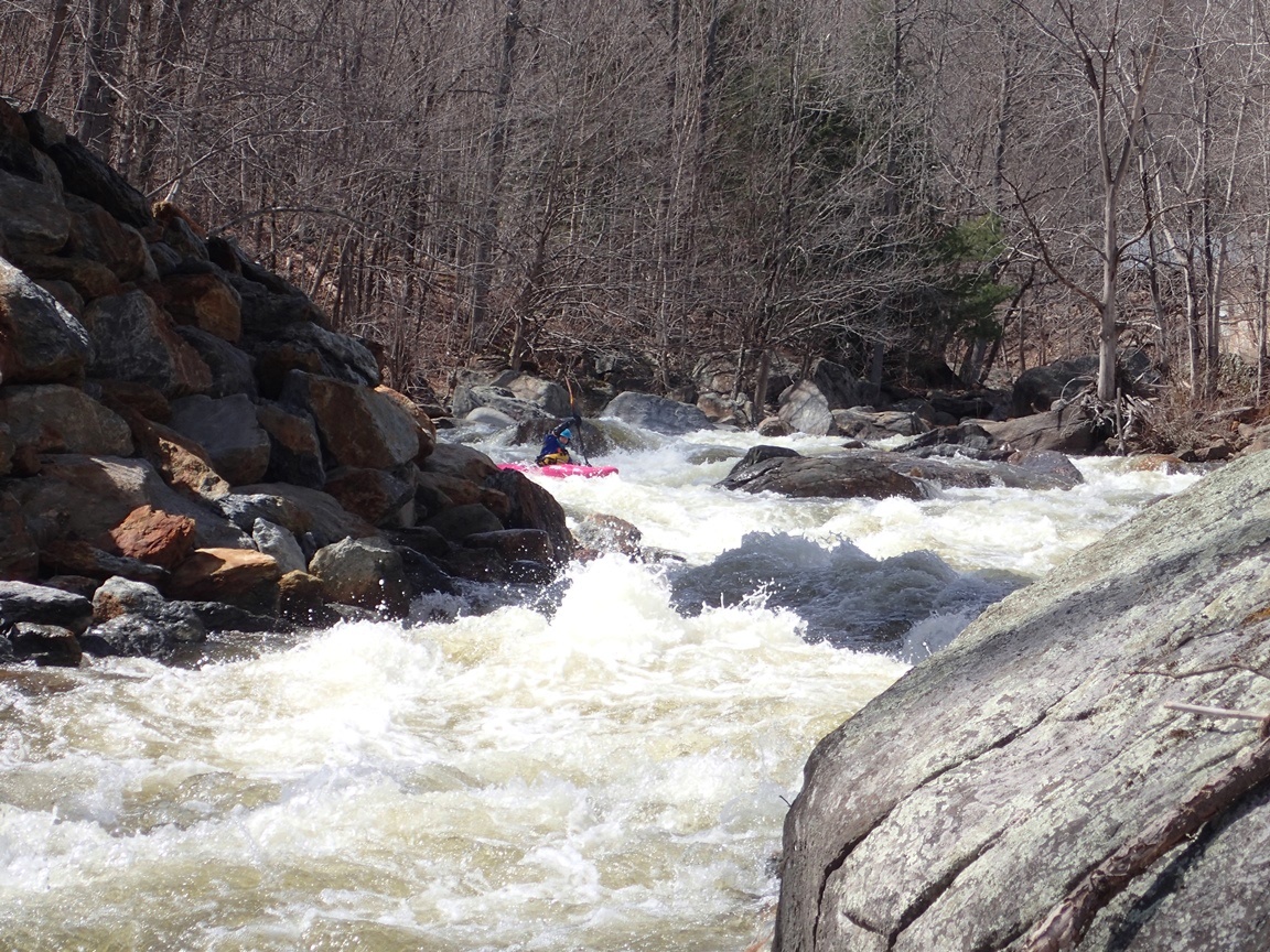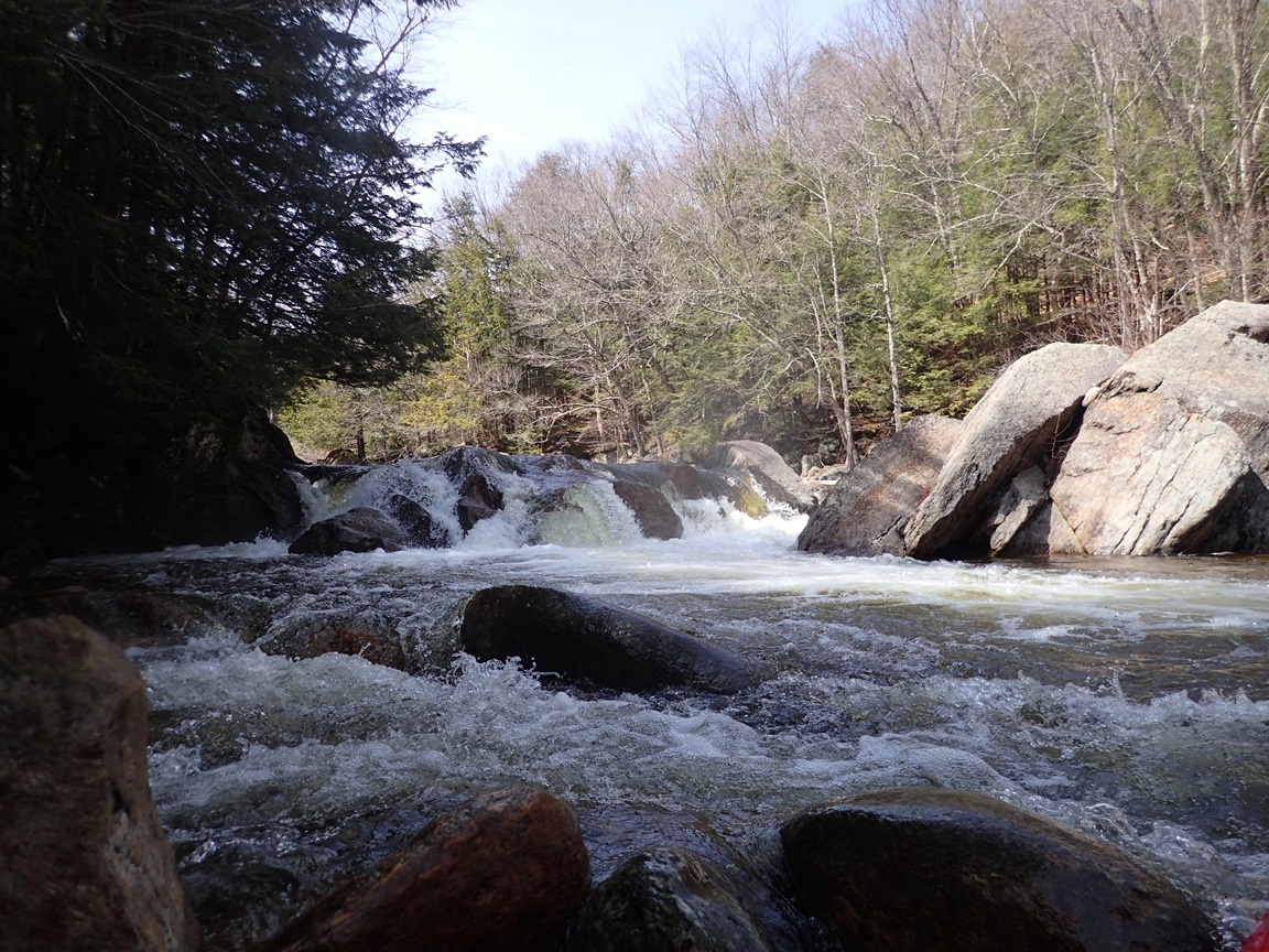 - Readsboro Falls (V to P). Just at put-in, this rapid is a double drop that has a deep powerful seam. It looked very runnable, but also like high potential for a wipe out. We walked as it would be the first strokes of the day.