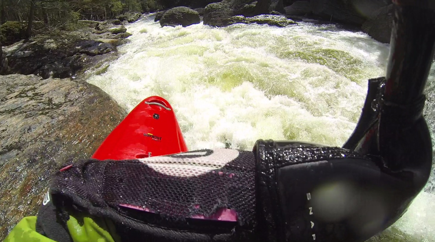 - Howe Pond Brook Rapid (IV+). Just after putting back on at the base of the tunnel you are greeted with this nice long rapid. It started with some read and run down the far right. I think lines were also open in the middle, but there were some boulders there and the boat scout showed us down the right. The second part was straight forward down the left punching a few small holes. The exit was in a constriction. We caught an eddy at the lip and scouted on the left. It turned out to be mellow down the left. There was a sneaky piton rock dead center that I could see folks finding if they bomb in.