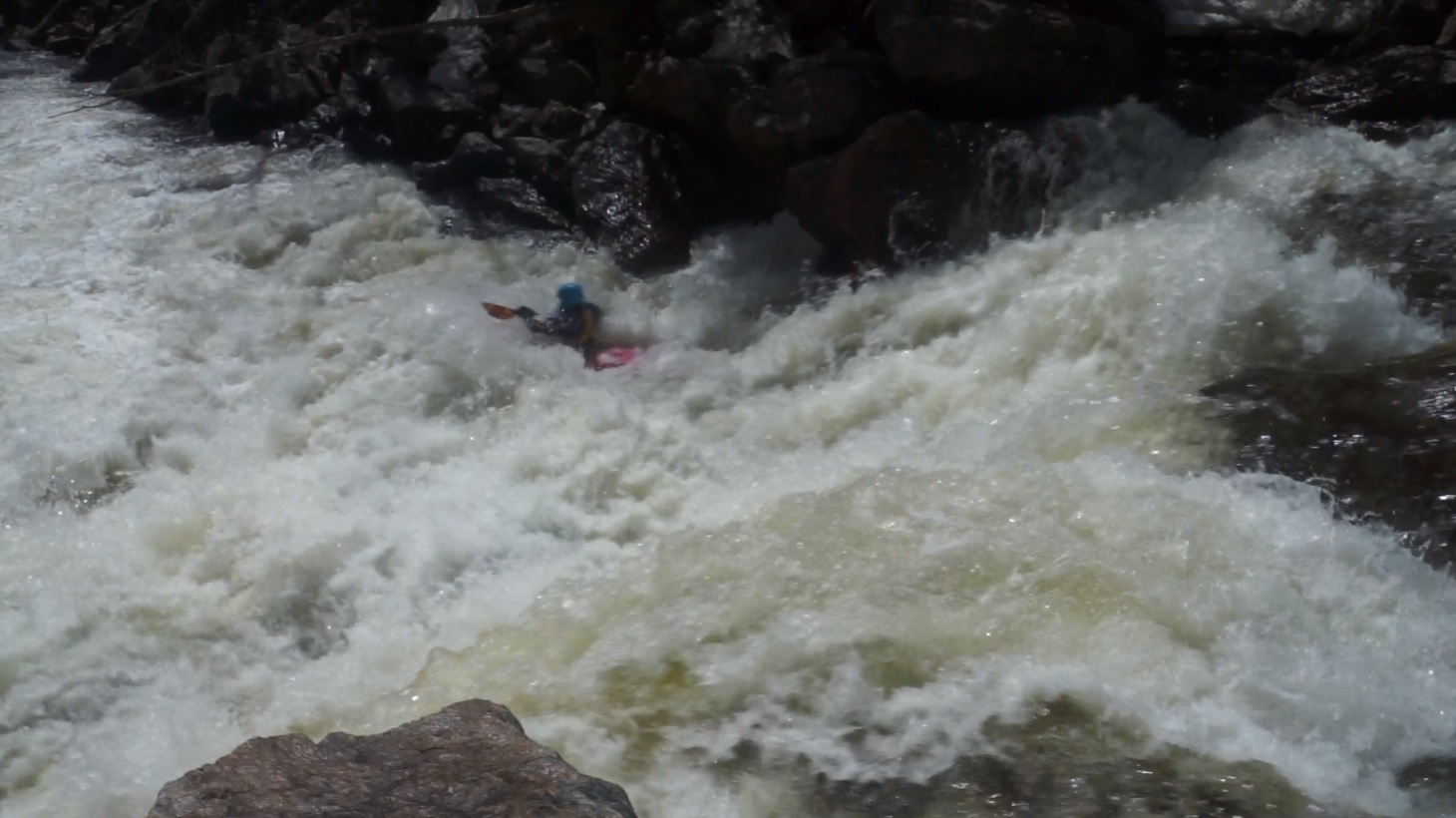 Cauldron (IV to V). Immediately below is a fun drop involving a big shoulder boof off the right wall. This then goes immediately into the next rapid with only one small eddy on the right between the two.
