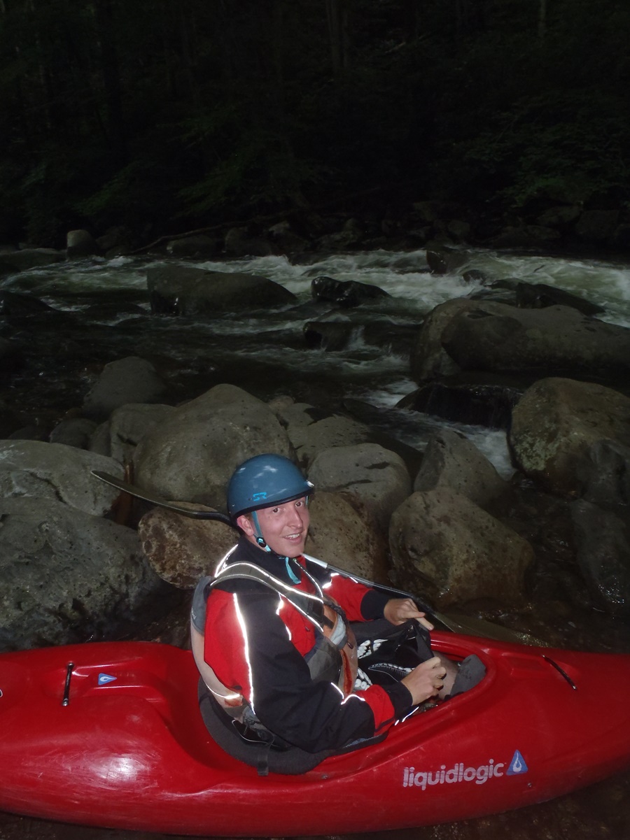 The trip was made possible by enough first of my stay, or life for that matter... a Tennessee afternoon thunderstorm. Good lord. The sky went dark (literally) and rain and lightning shook the apartment, tornados swarmed not too far away from town, and rivers filled. Over 3 inches of rain from the brief storm... crazy. So the next morning the facebook boards and text messages began to light up and a plan to catch my new friend Mike Reber on an evening lap was formed. The additional perk of this plan was that David Maurier just happened to be driving through Knoxville this day on his way from Palo Alto, CA to Winston Salem, NC where he is taking up residence for medical school... so I had a best friend so carpool with. Though disappointingly it turns out he doesn't fit in all of Diane's gear as well as would be hoped so his session on the river was a bit shorter than ideal.