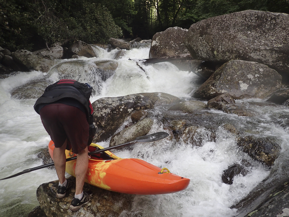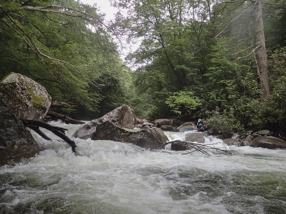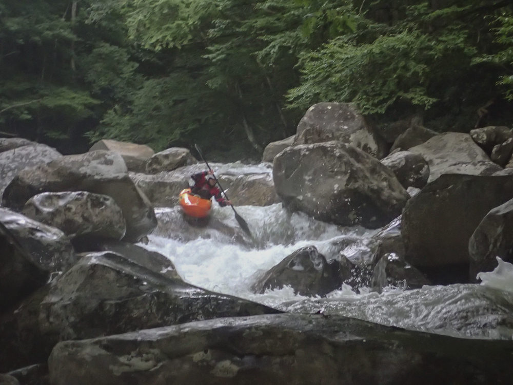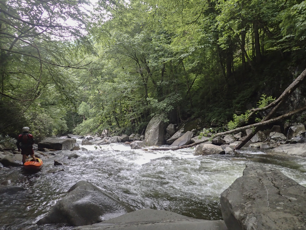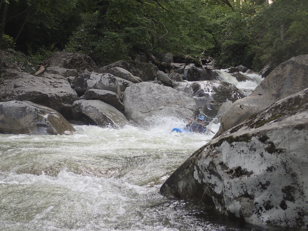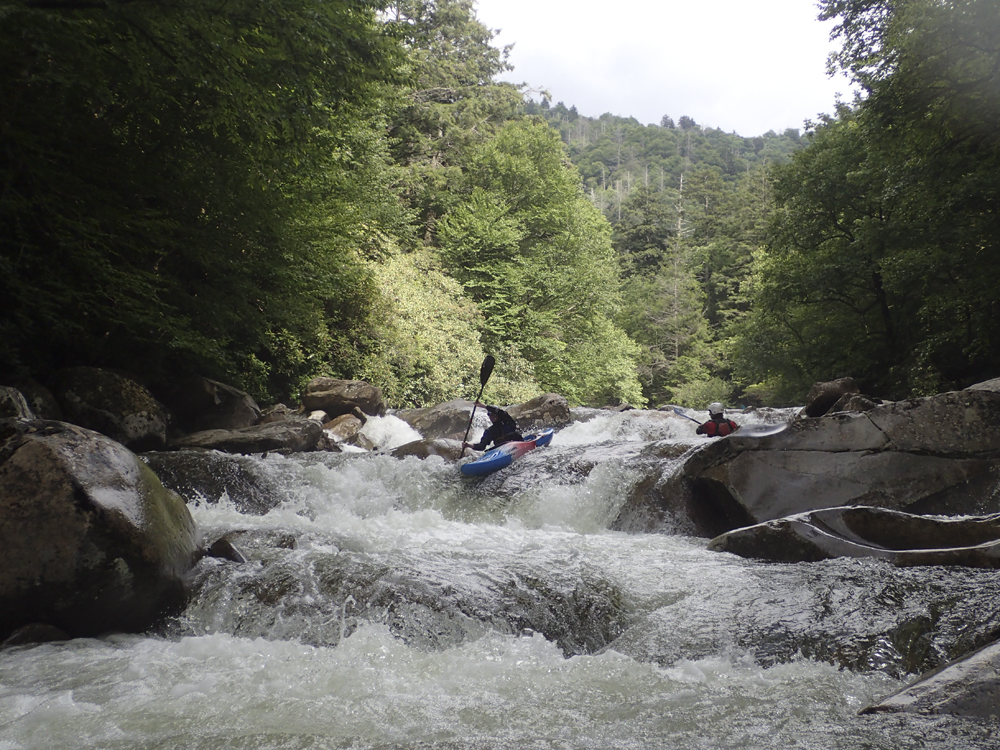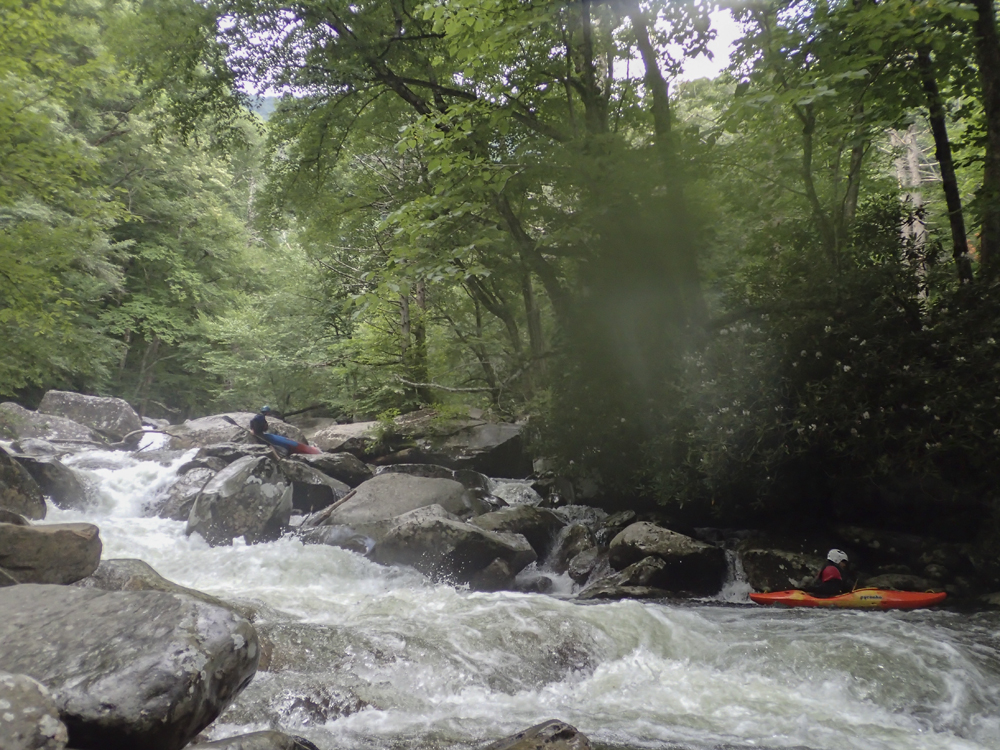 Last summer when we moved out to Knoxville, I was blessed with ignorance. Although thanks to friends highly recommending the West Prong, I did not know it by detail or by reputation. It wasn't until after I did the Lower the second weekend I lived here that my friend Laura Farrell told me that it has a reputation of being every bit as hard as Ravens, Toxaway, and Linville. Now I still have two of those three on my list... but that was a surprise to me. If I had known it was held with such regard as those others I would have been more nervous! This year, thanks to another summer thunderstorm, I once again got the chance to boat the West Prong. This time however, the water did not hold high enough to allow for a full top to bottom run, as the lower was too low by the time the after work warriors made the drive past Gatlinburg. Instead we found low flow, and that meant the Upper would be the only option. This was fine by me as I had yet to do the Upper. However, this time I also did not have the ignorance to avoid the nervousness I was lucky to avoid last summer.