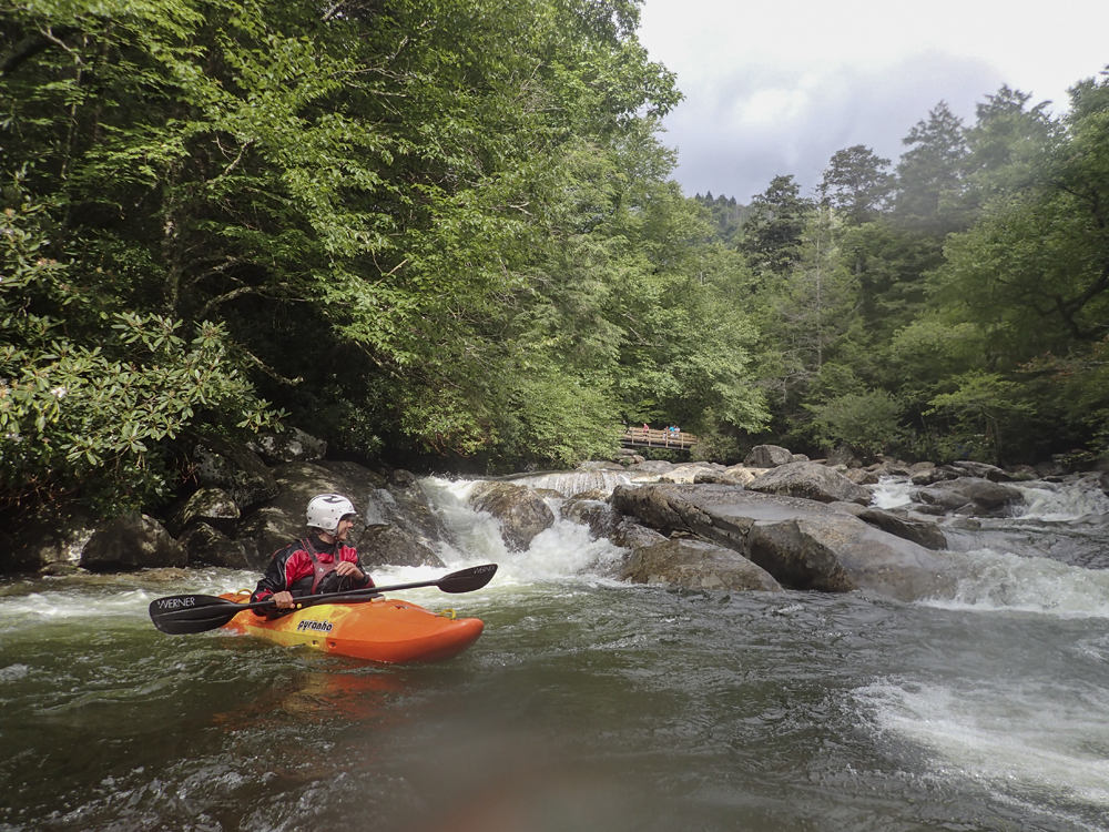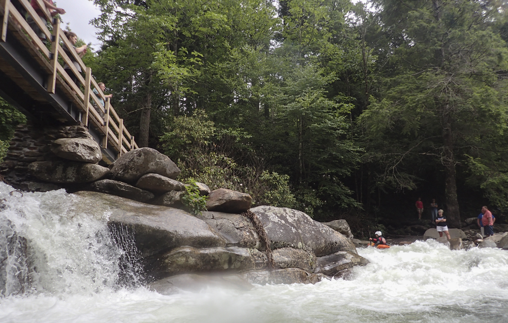 Take-out: From Gatlinburg, take Highway 441 south for 6.2 miles. Just before the road hair turns to the left and crosses the river, enter the picnic area to the right and park. The gauge is on the downstream side of the bridge.