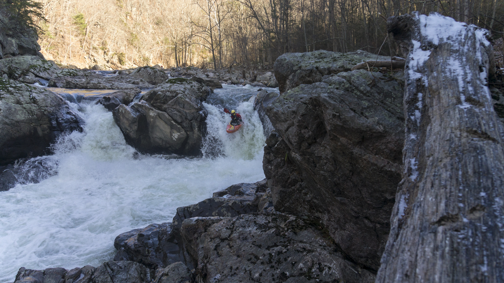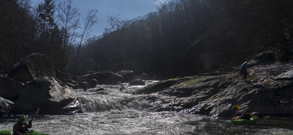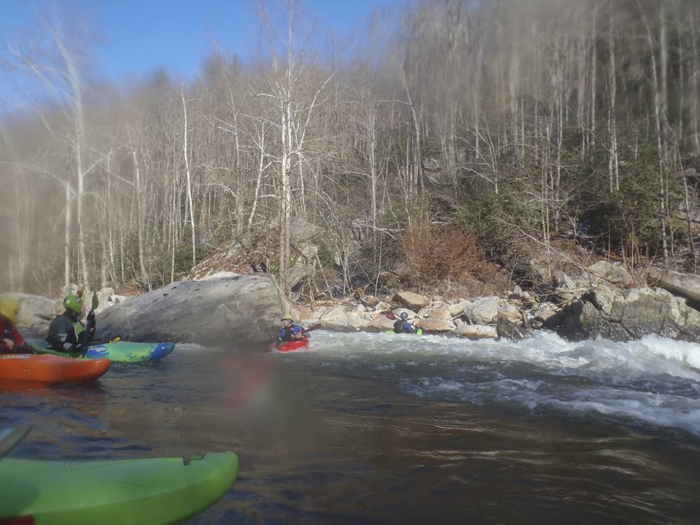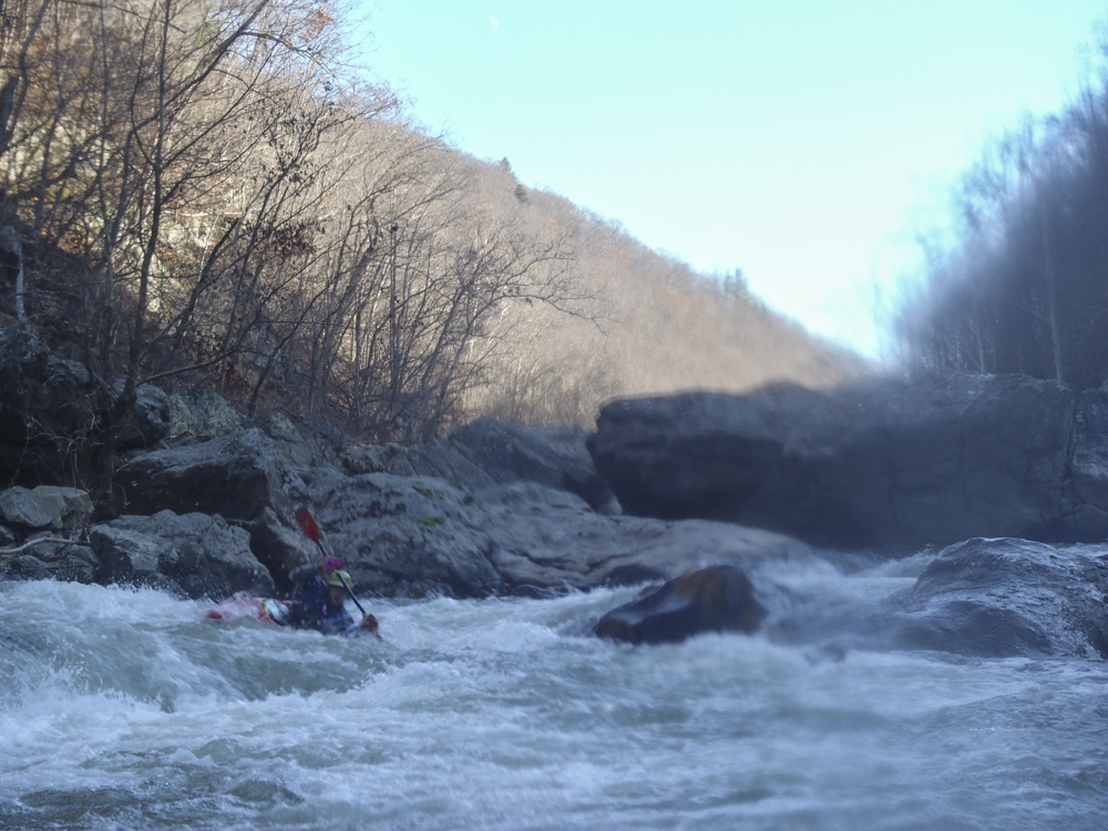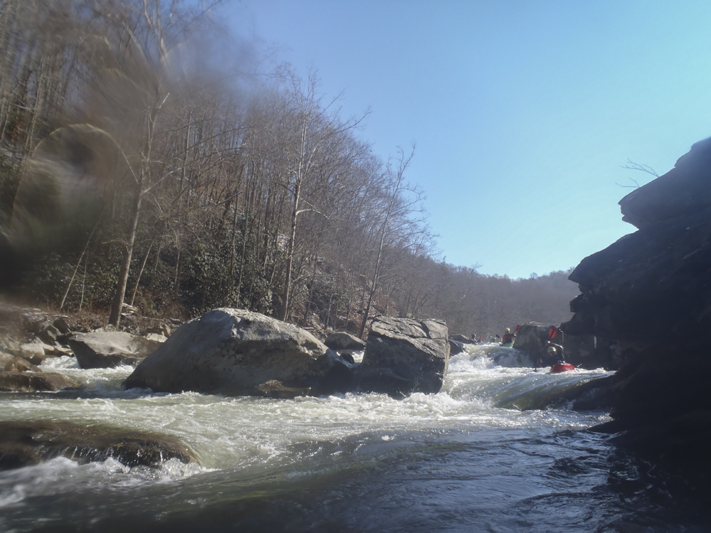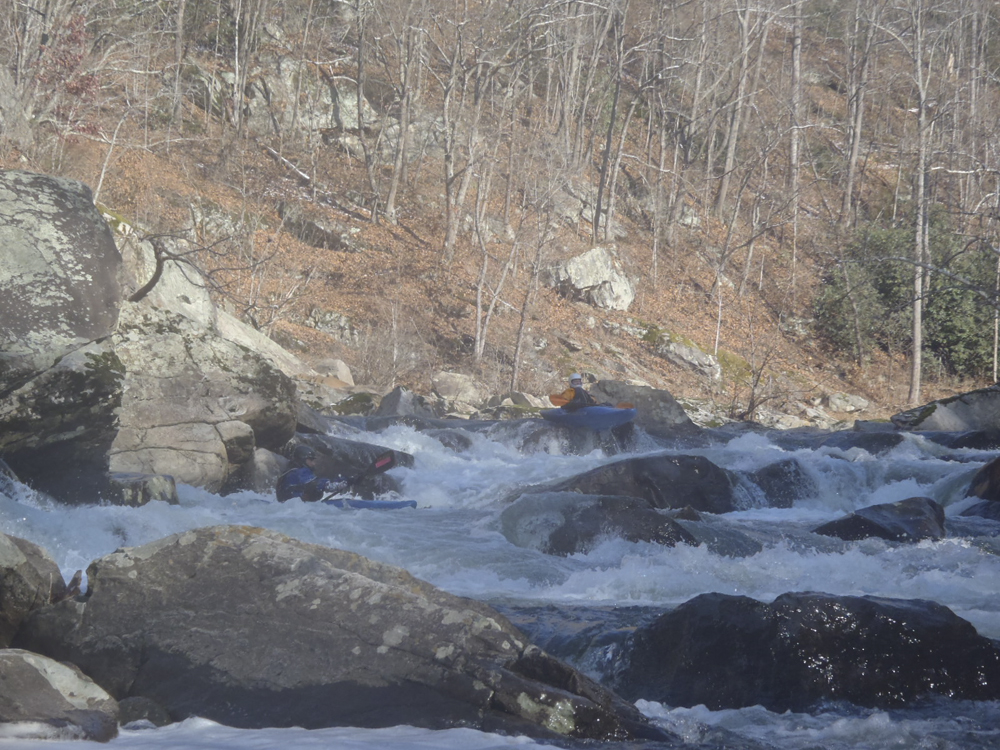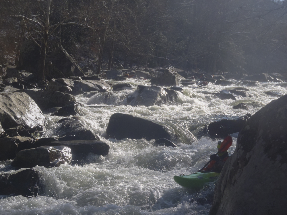 None of the Knoxville folks I reached out to could make the drive the day after Thanksgiving, so I reached out to some other folks looking for a group to join and found a group in town from New York. Arriving at put in we were surprised to find out the groups other plus 1 was actually a plus 15 and had a large group of their own. For whatever reason we did not break off on our own, so instead we headed down river at a slow pace in frigid 25 degree weather. Most of the run was boat scoutable, although we had some folks who had done the run before, they were busy helping some other first timers down. I decided to avoid the crowd by staying in front, only a few times deferring for beta rather than probing something I could not see the bottom of. The style of rapids although most boat scoutable did sometimes get congested and steep. A few scouts would be needed for all but the boldest boat scouters.