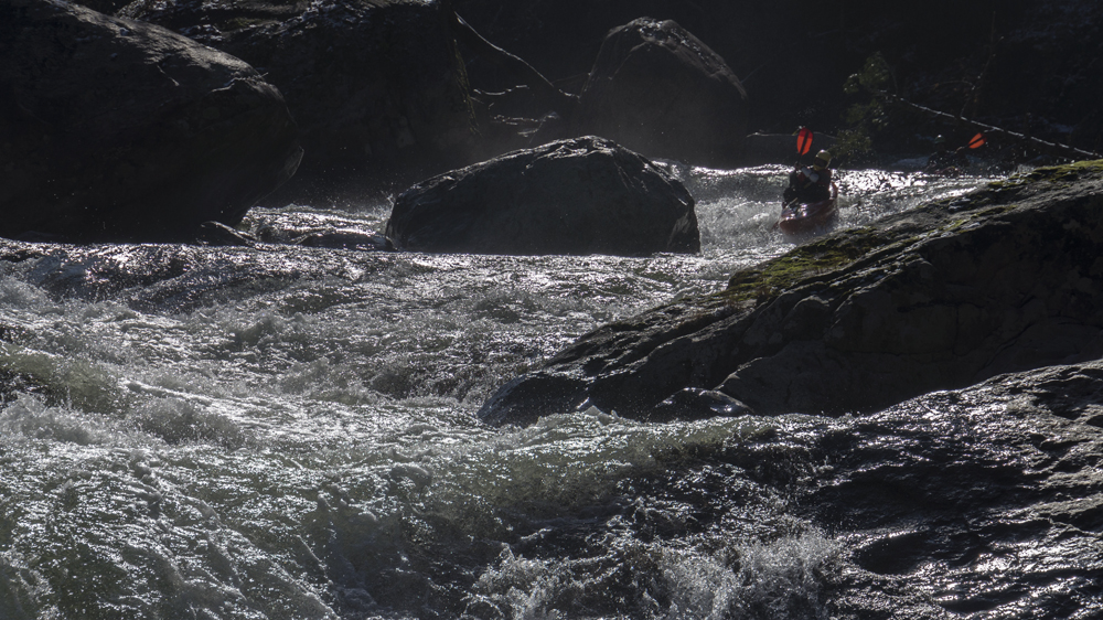 - Shitkicker (IV). The moves on this rapid aren't hard, but it is rocky and therefore pinny and sievy which results in some calling it class IV+. I would actually give the moves class IV- difficulty, though the consequence is there. You can either start far far left and avoid the first hard move but it is rocky and that could cause problems. Or enter far right and move all the way left across the river. The tricky part is below the middle move you want to keep moving left (or back far right), but a lot of water pushes into a bouldery middle part that you want to avoid.