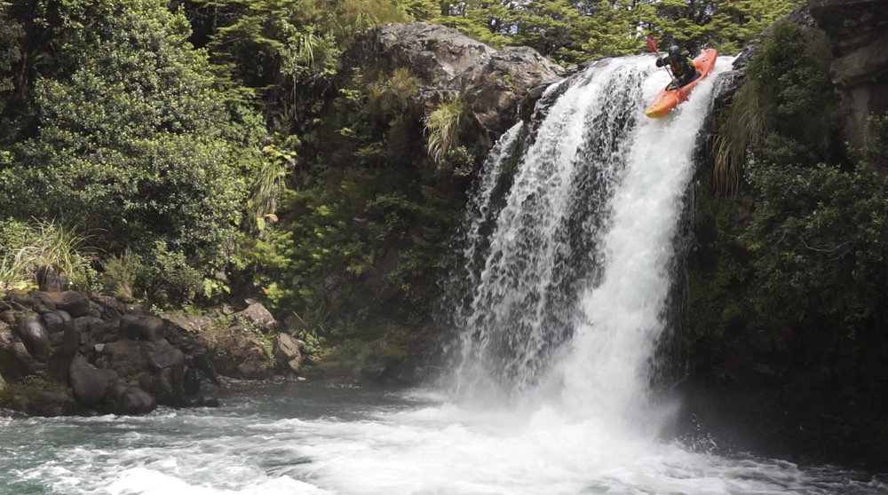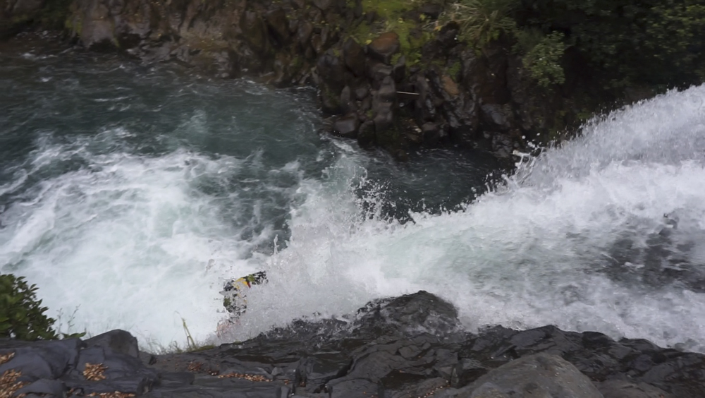 - Tawhai Falls (IV+ to V-). At the low flows I had I would give it a IV+ because it was very low volume, wasn't a super straight forward lip, and had a whole lot of green water to mess up and hurt yourself in. At high flows I have seen that the lip is straight forward but the boils become huge at the base creating additional hazards. The line at the low flow I had was down the only spout of water with enough water to float, far left.