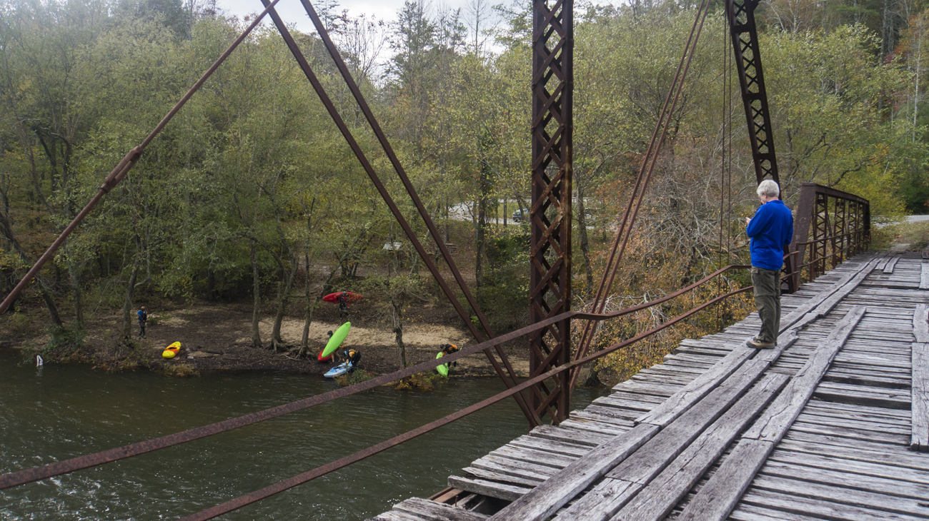 Take-out: From Huntsville TN, take 297 West for 2.8 miles to US-27, turn left to head south. Follow Highway 27 for 3.2 miles and once you cross the New River, take the first right on Old Highway 27 (there is a River Access sign here). Follow it for 1.4 miles and make a quick jog right on Mountain View Rd which then immediately jogs back left. Continue for 2.3 miles and turn right (also a River Access sign here) at the 4 way intersection onto W Robbins Rd. In half a mile, turn left on Honey Creek Loop Rd and follow this quickly down to the water. Parking is on the far side.