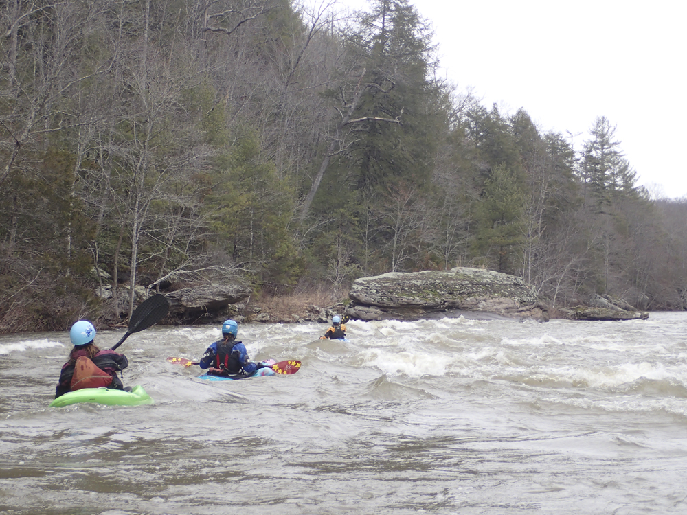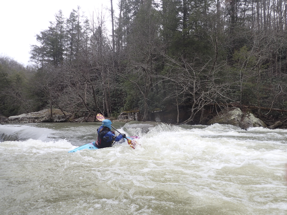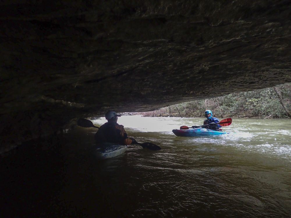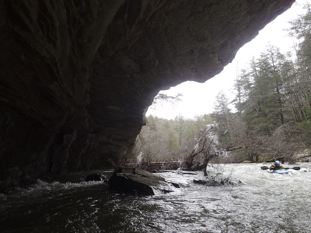 The trip ended up being really nice. The group consisted of Diane, her mom, and I, as well as our friend Laura Eddlemon. The run starts with a little flat water before getting into the Class II which is consistent among the nice plateau walls that line the river. There are many caves formed by deep undercuts, which are a blast to paddle back under. After 5 miles you get to the hardest section, as the creek makes a final push to the confluence with Clear Fork. Two standout rapids will keep you on your toes in this section. Then you will hit the confluence with Clear Fork. From there many more class II rapids come at you, several with epic play spots, until finally the canyon walls pull back and you are greeted with a few flat straight-aways before you reach the take-out. The end certainly begins to drag on a little, but I think I also found that because 1) my ass was asleep and needed to be stretched 2) I blew my knee the previous week and it hurt in the boat and 3) I had to pee super bad so the end couldn't come quick enough!