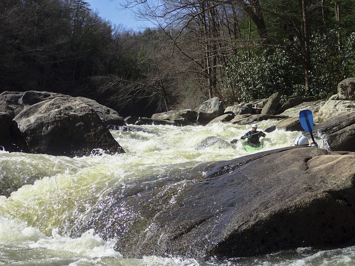 The run went by in a blur, but it really was quite good quality. Other than Swallow Falls, you are treated to numerous great boofs amid continuous boulder gardens which ebb and flow in difficulty. The crux of the run is a rapid with a sizable sieve just off line near the top. If you are pushing your limits on this run, this rapid will get your heart going and should at least be scouted so you can see the hazard. For folks who are comfortable on class IV, the move away from the hazard will be mellow and thus making the rapid very enjoyable.