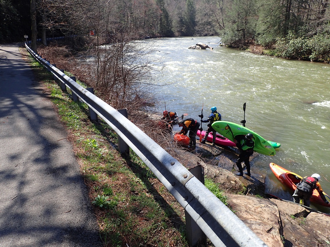 Once on the water, our group made quick progress downriver, briefly scouting Swallow Falls before having a local catch us and proceed to show us all the great boofs on the run for the rest morning, thus helping us make quick time to take-out by 11 am!