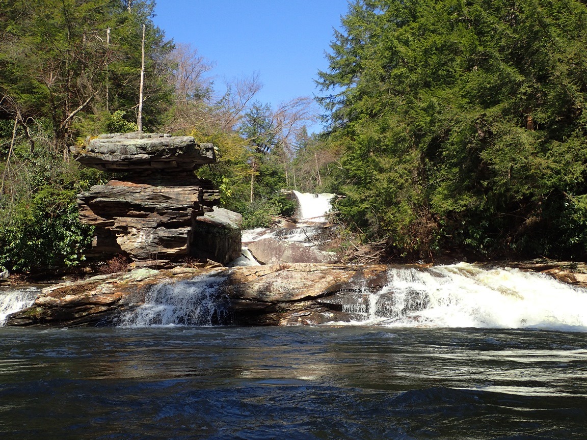- Swallow Falls (IV+). No warm up here, just downstream from put-in hop out on the left to scout. Two lines are common, one is right of center down the main ramp, trying to avoid getting too far right. The other is a hard middle to left cut that some feel is easier.
