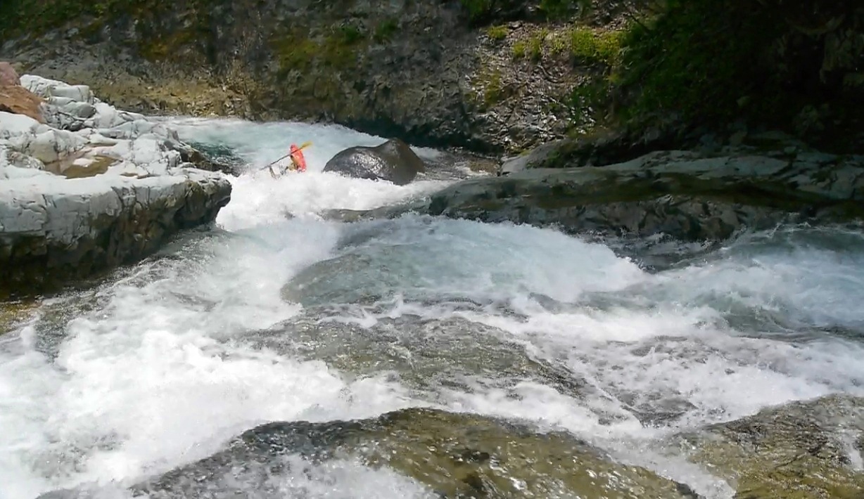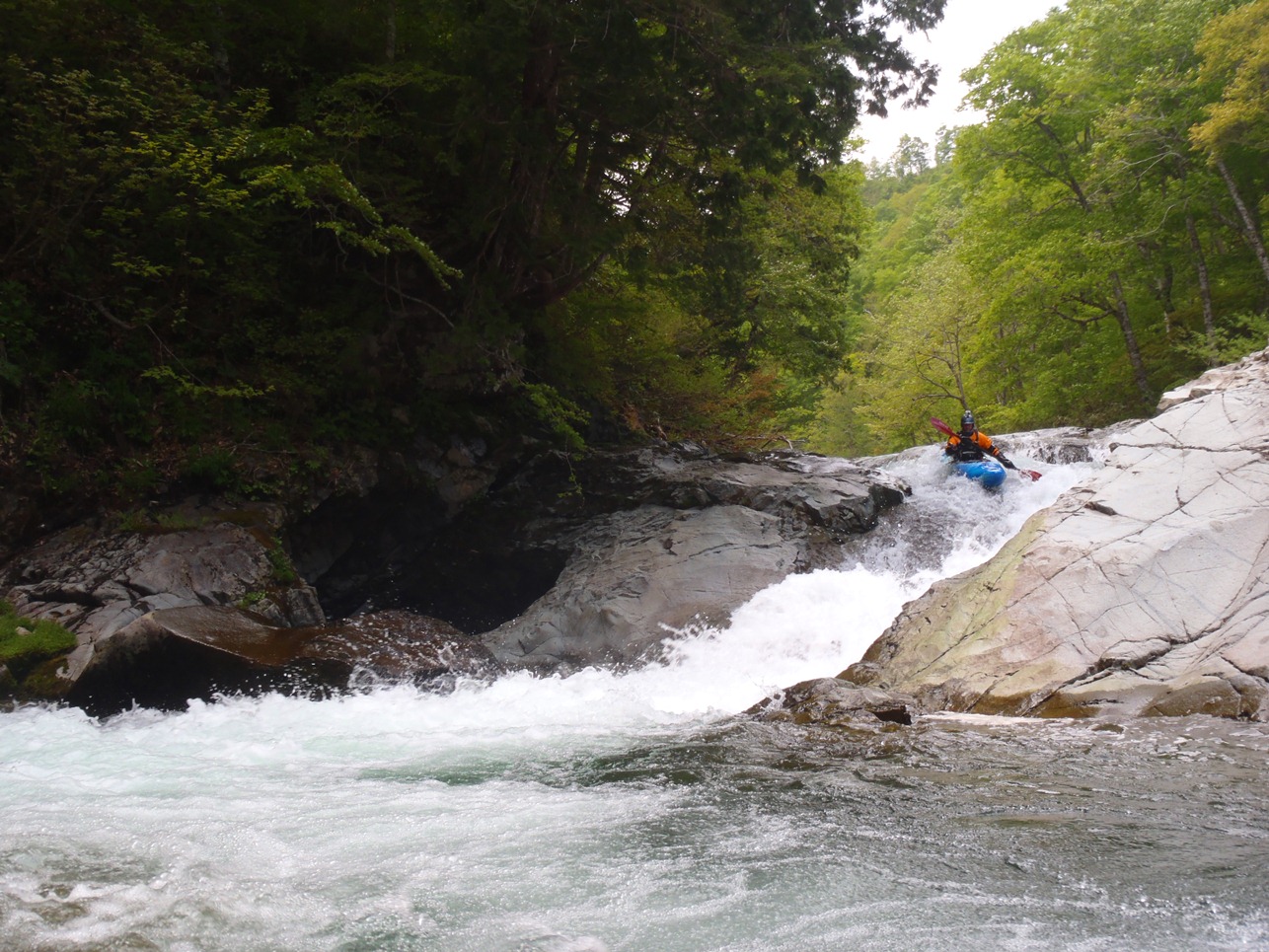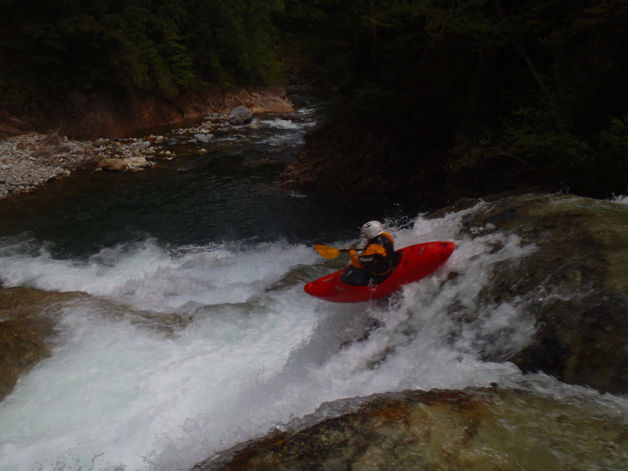 Slide (IV to IV+). The first good bedrock rapid is a slide that sldies you into the left wall, which is fine as being further right you would meet a rock.