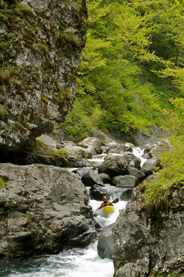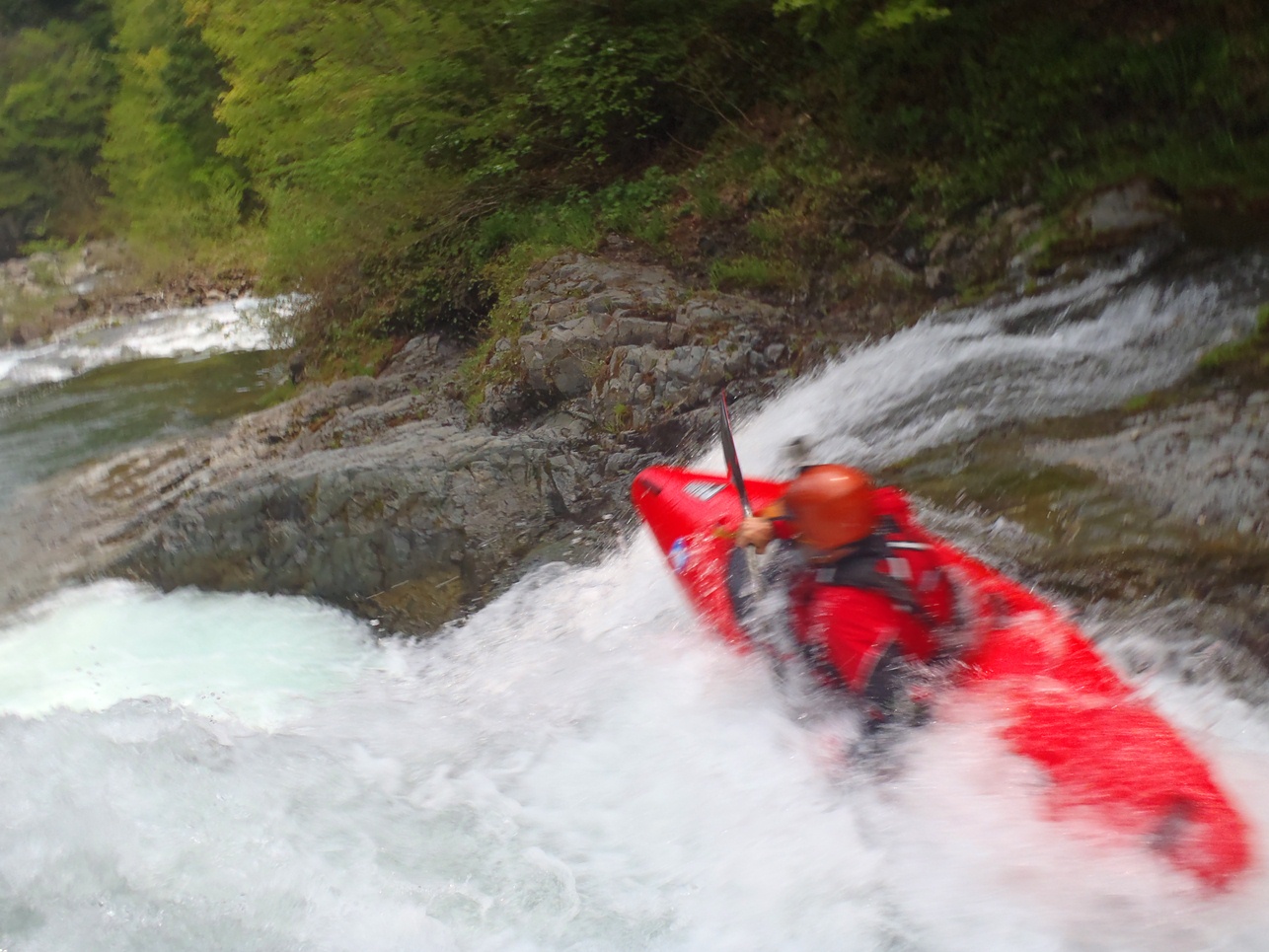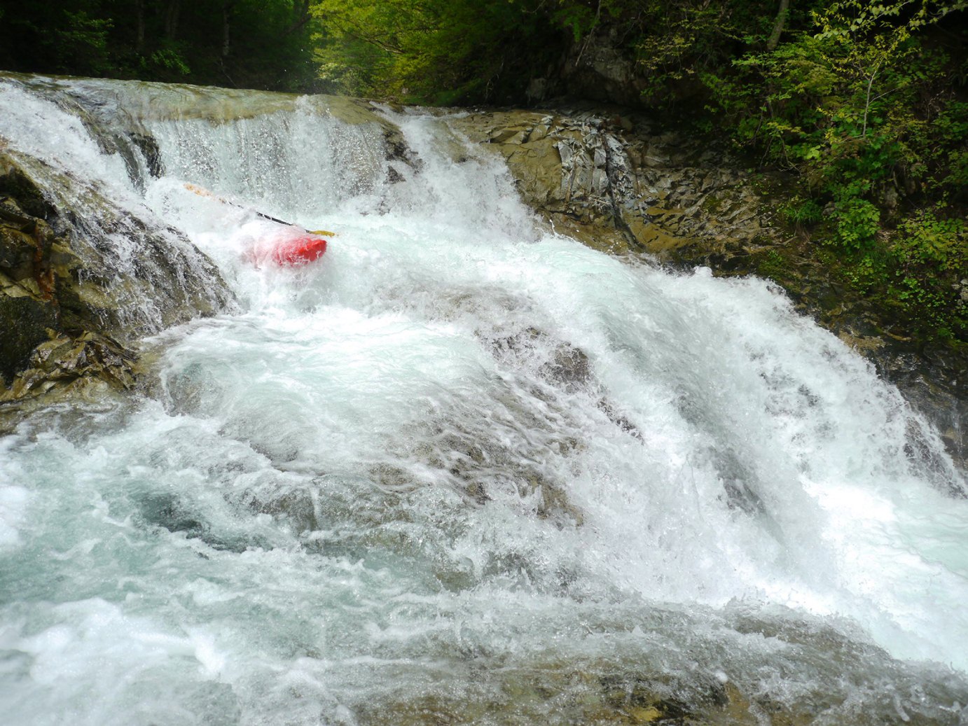 Slide (IV to IV+). The first good bedrock rapid is a slide that sldies you into the left wall, which is fine as being further right you would meet a rock.