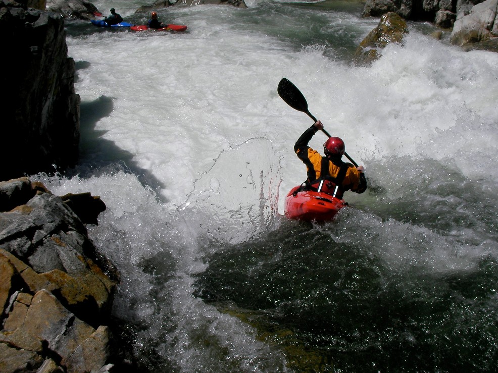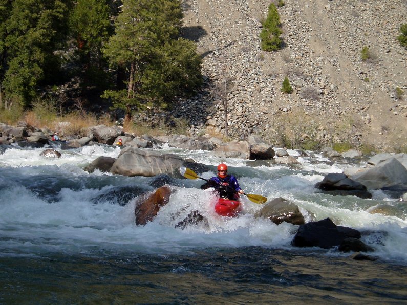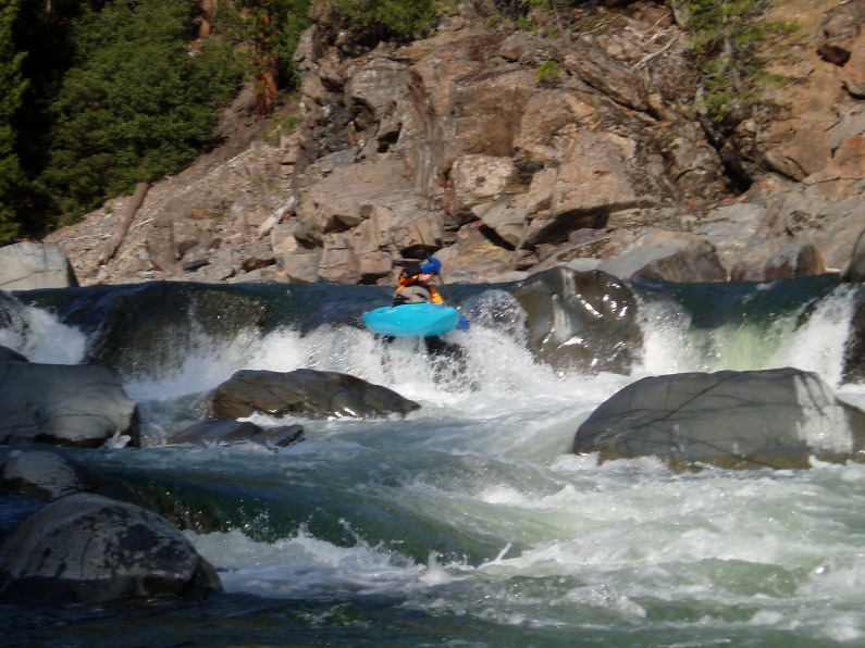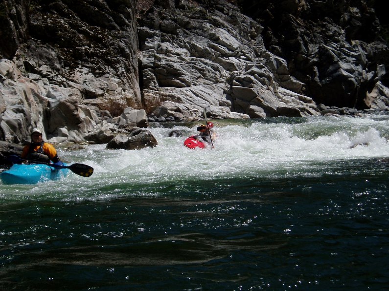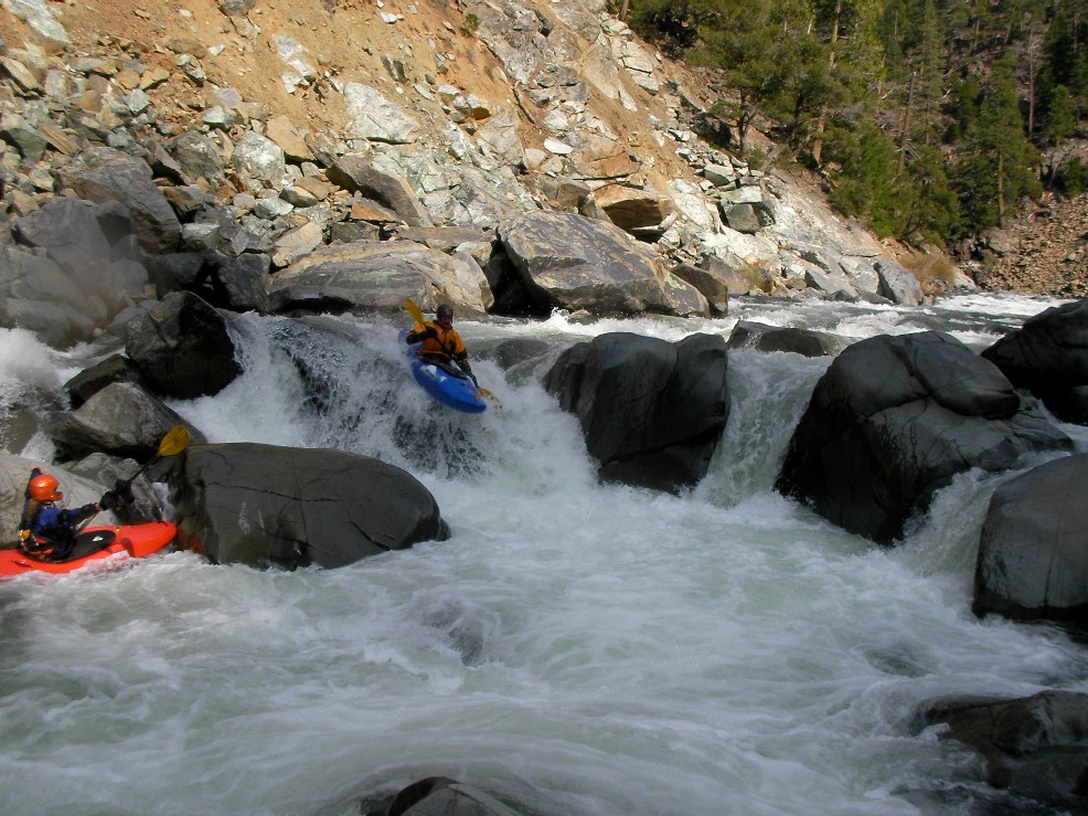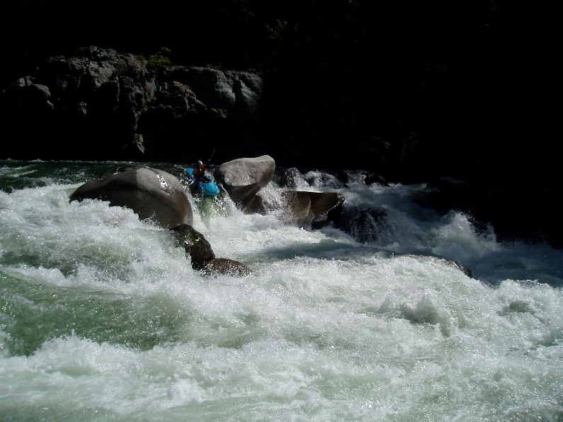 - Triple Drop (IV+). This is a long rapid with three sizable holes to punch. The last is the biggest and had a small window on the right to bust through. There was also a large room on the right just below the drop, very fun.