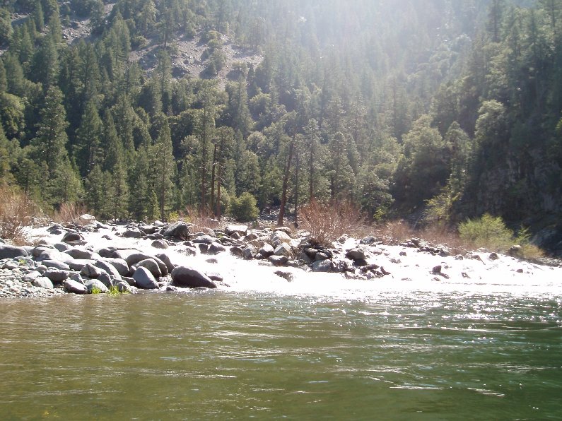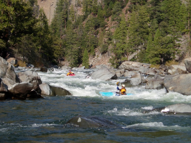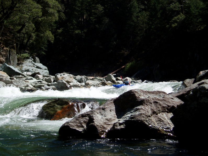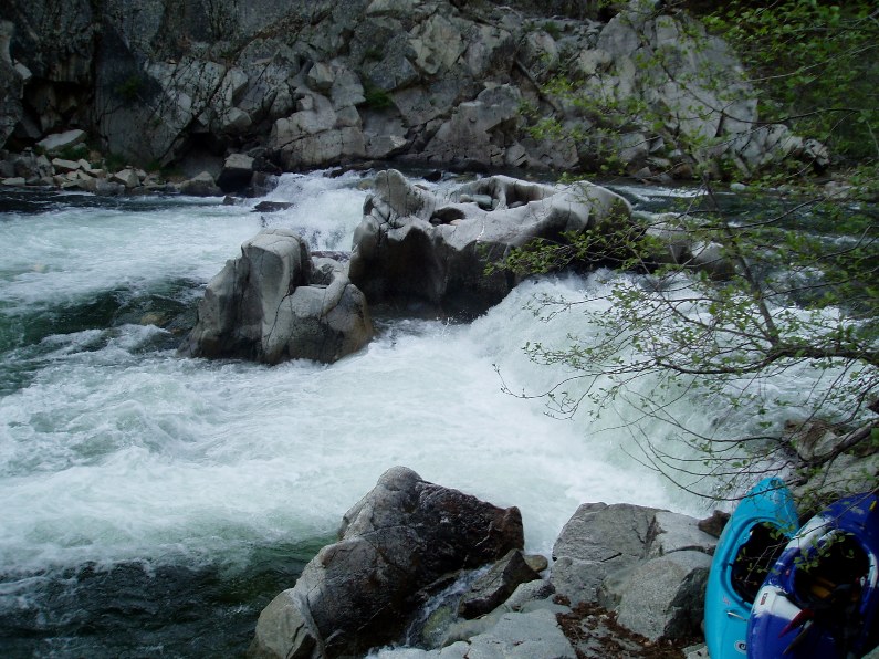 - Two Rapids down is a shallow rapid where all the water goes over a 6 foot tall boulder pile. The correct line is the very small channel on the right shore, trust me, it goes WAY better than any other spot in the river.