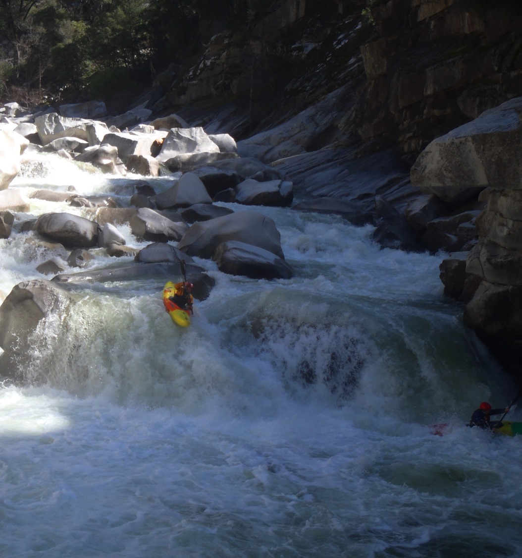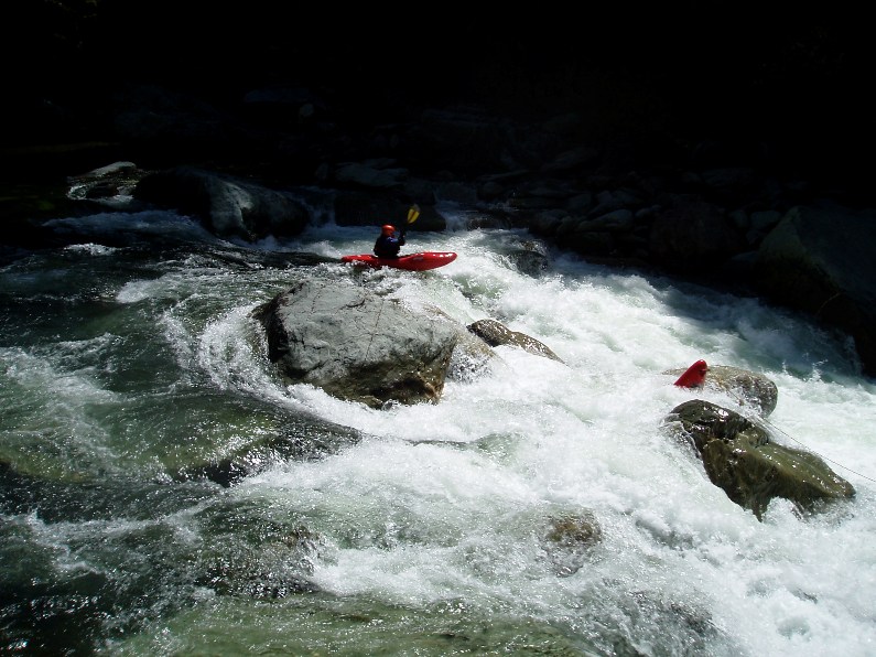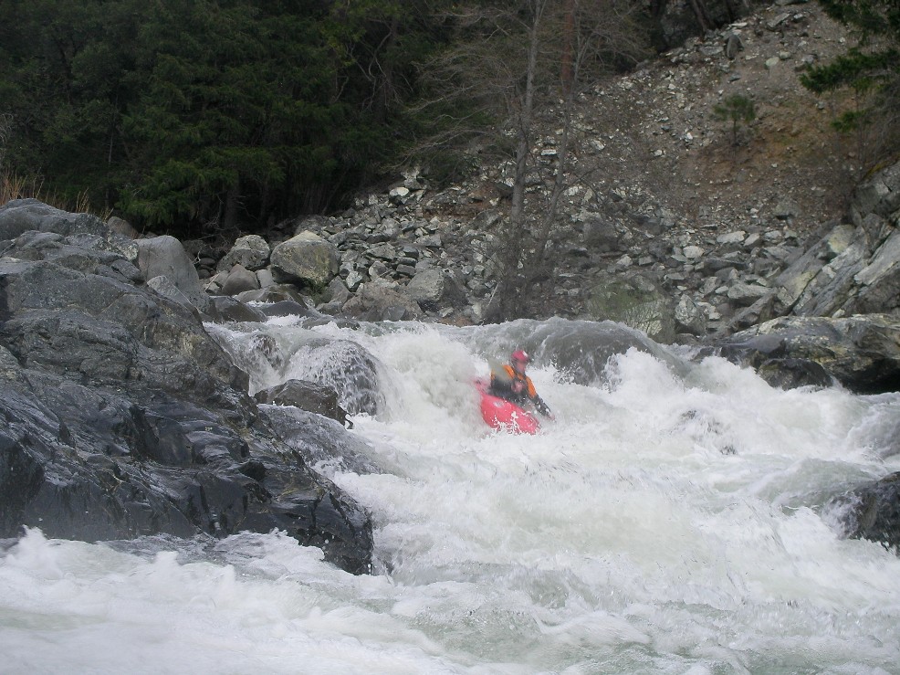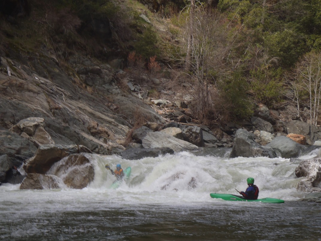 2-part (IV+). A long rapid with 2 distinct parts. The first was a ramping lead in run down the guts. The second was around an turn and then hitting a boof in the middle of the river, such a nice boof.