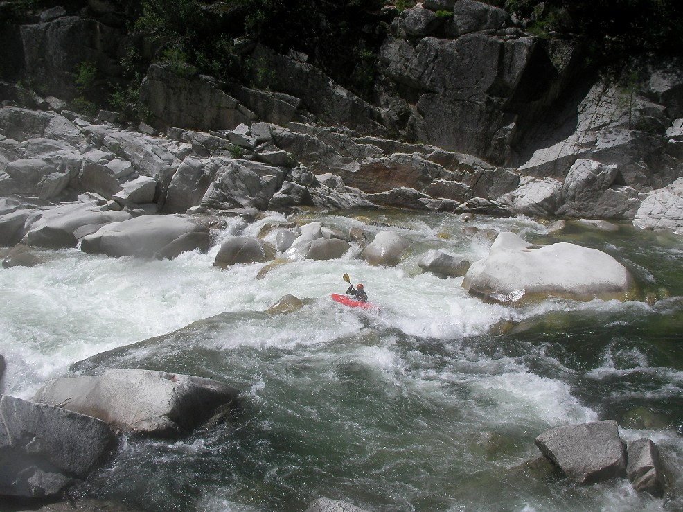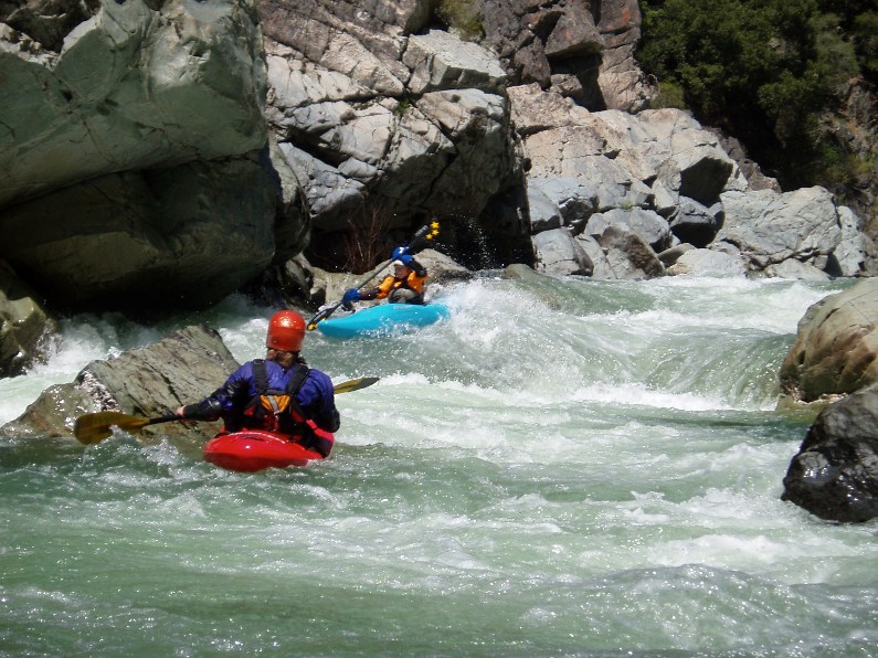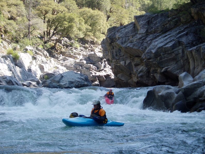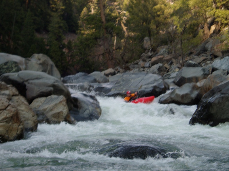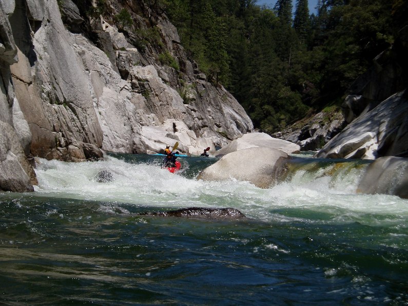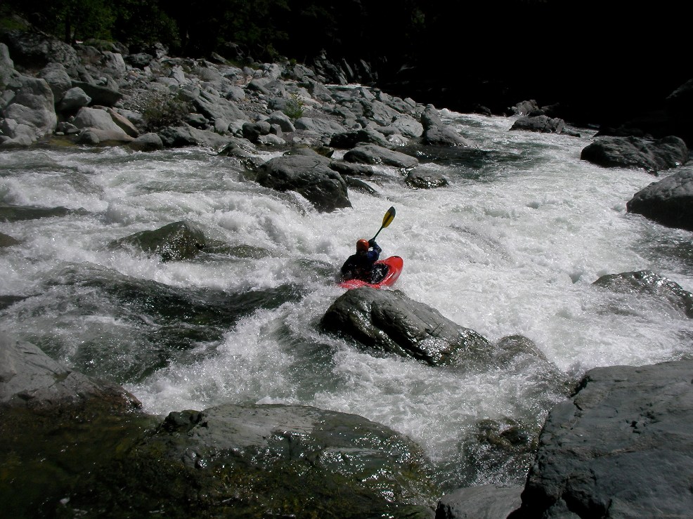 2-part (IV+). A long rapid with 2 distinct parts. The first was a ramping lead in run down the guts. The second was around an turn and then hitting a boof in the middle of the river, such a nice boof.