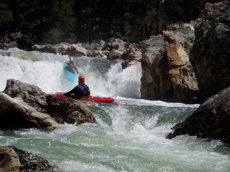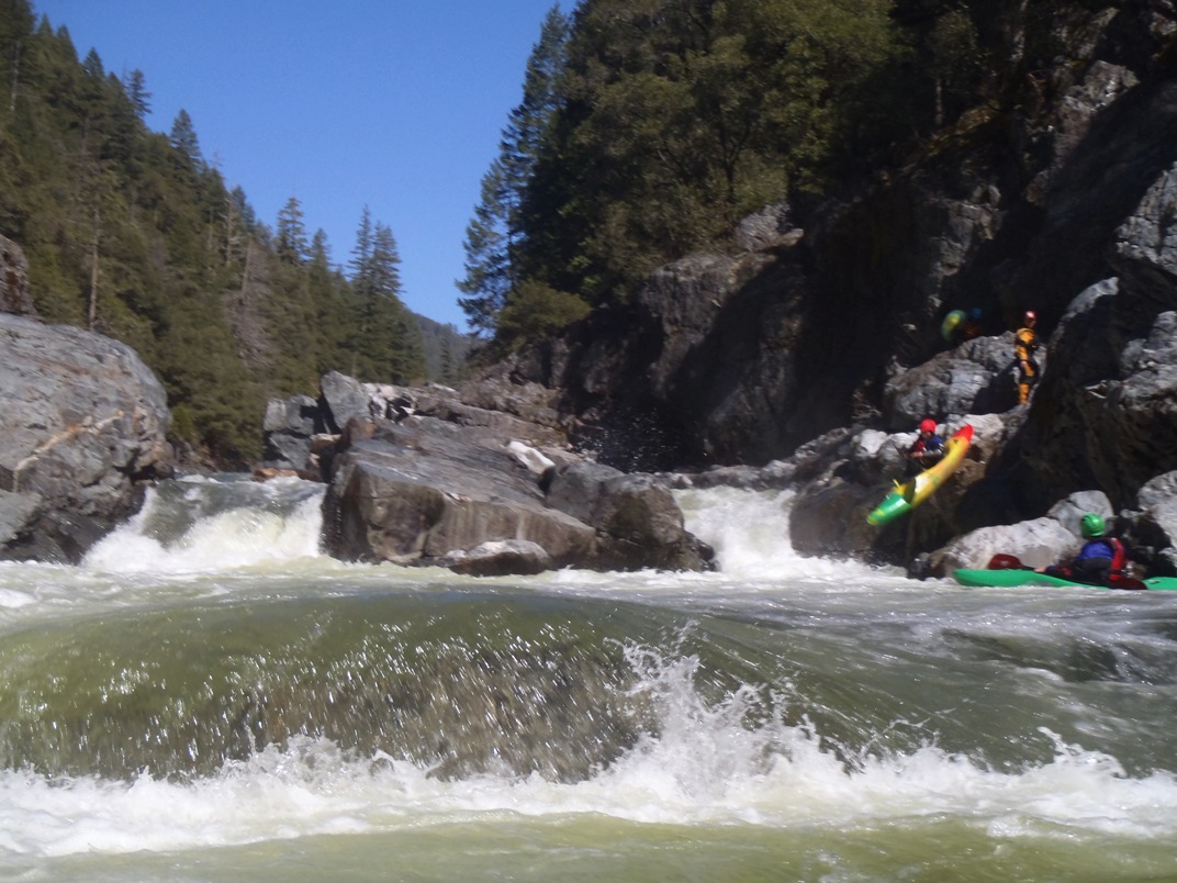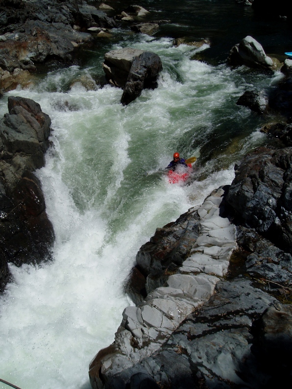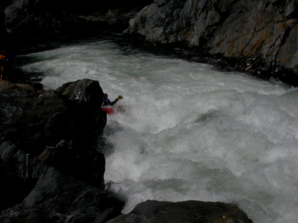 Grand Finale (V). I was hoping that this would be like people calling Pin Ball on Giant Gap class IV+ just because it is at the end of the day... but no, this was class V. A large lead in had to be negotiated correctly to allow you to enter the left eddy. Then drop over a large drop and negotiated the hole driving right to avoid being slammed into the wall and a room of doom in the wall. Scout early, before the lead in from the left side, and portage from there if so desired. Once you have entered the lead in, you are committed to running the drop.
