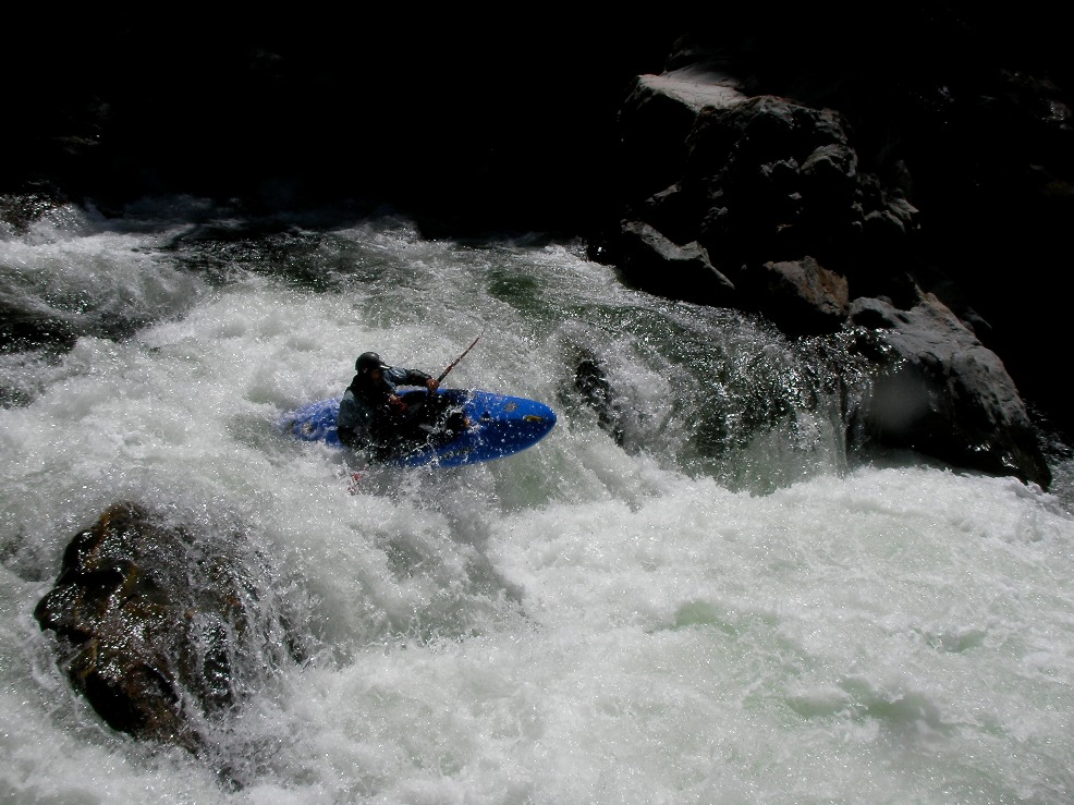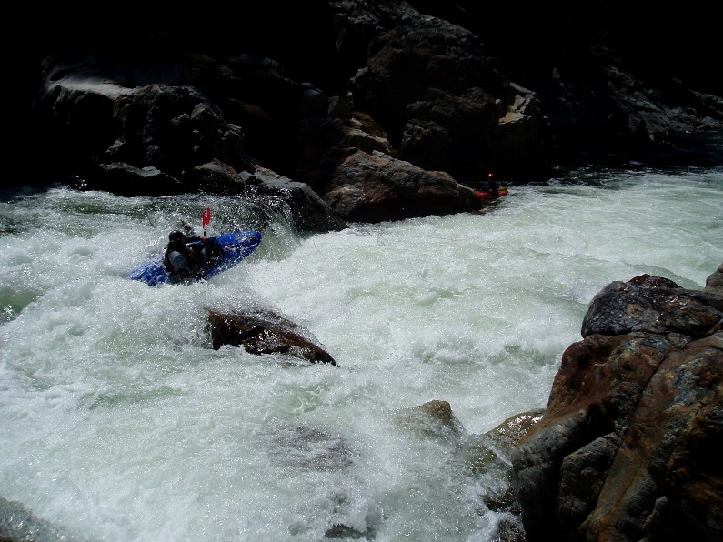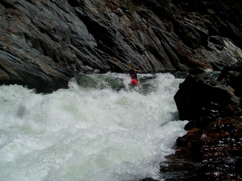 I had been looking forward to this run for a year or two. This spring I bought a new boat (Everest and damn I love it!) in order to boat this run. I read the reviews saying that this run was class V-, easier than Cherry Creek, that it was III-IV with an occasional V to "spice things up." I think most of these things were wrong. I think the run was easily on par with Cherry Creek. Although there were no Lumsdens, there were copious amounts of large rapids, or large lines in the rapids. I would also say that although in between canyons there tended to be class III stretches with an occasional IV, once in the canyons it was much more class IV-V feel. And those canyons lasted for what seemed like eternity, granted it took our group an eternity to paddle each canyon as we didn't have someone with us who knew the lines. This resulted in our group having to scout a lot of drops, even once that turned out to be easy, just because they were so steep that you could not see over the horizon line. The frst day we paddled for 4 hours, followed by two 8 hour days.