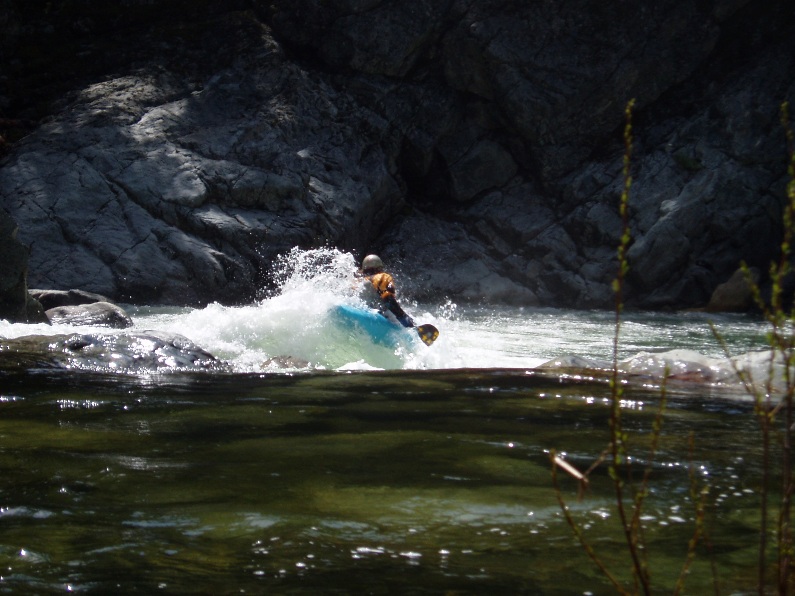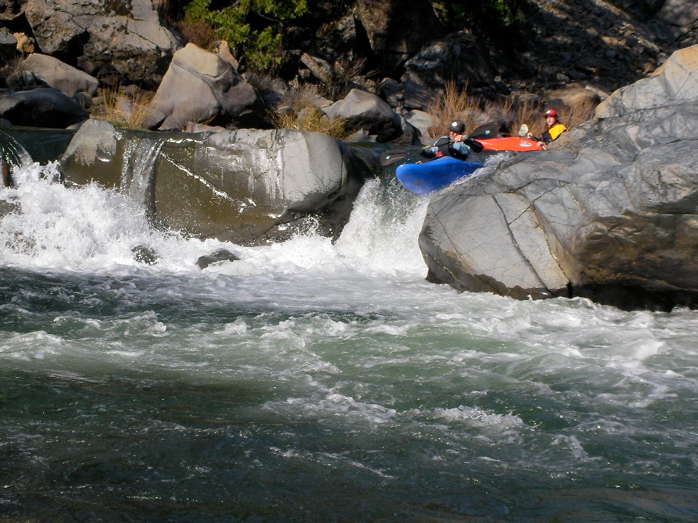 - Hole (IV+ to V-). A small off angle boof leads to a sieve if you muck it up, or down a ramp over a five foot ledge into a very meaty hole.
