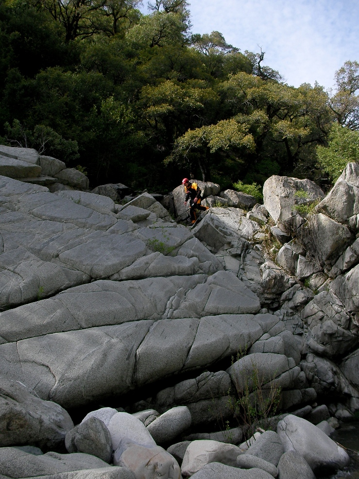 - Dam (IV-U). Man made danger. A rebar studded wood dam. The right side is VERY ugly, the left side has a meaty hole with rebar poking through. We walked on the left.