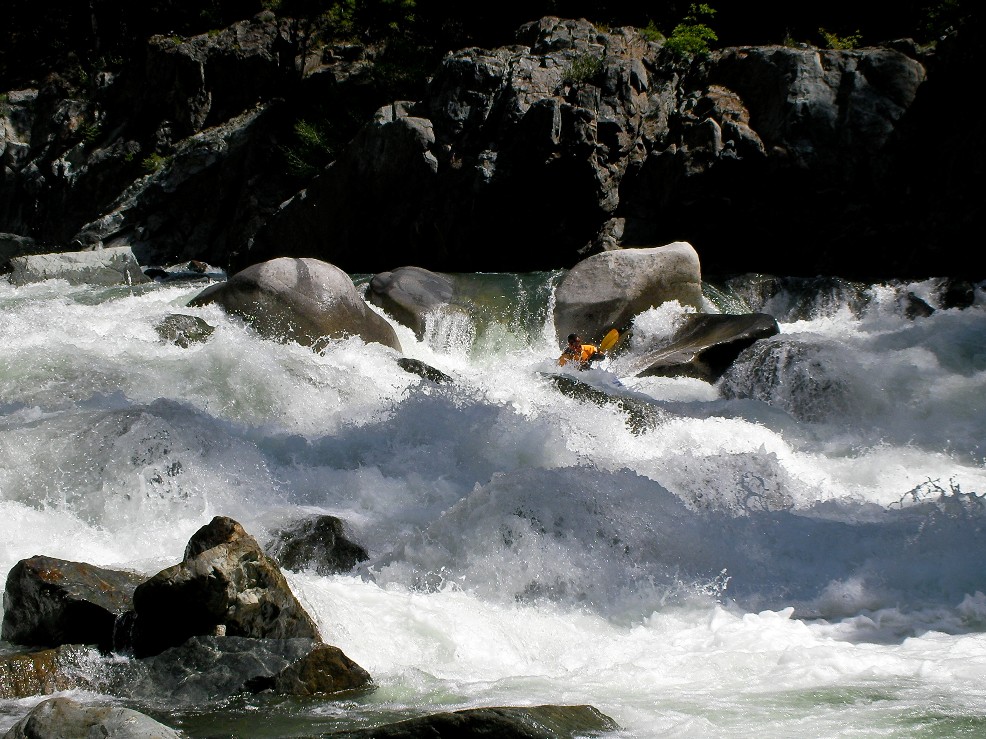 Long One (IV to IV+). A nice long class IV run down the center then moving right to avoid the pillow before dropping into the hole at the bottom.